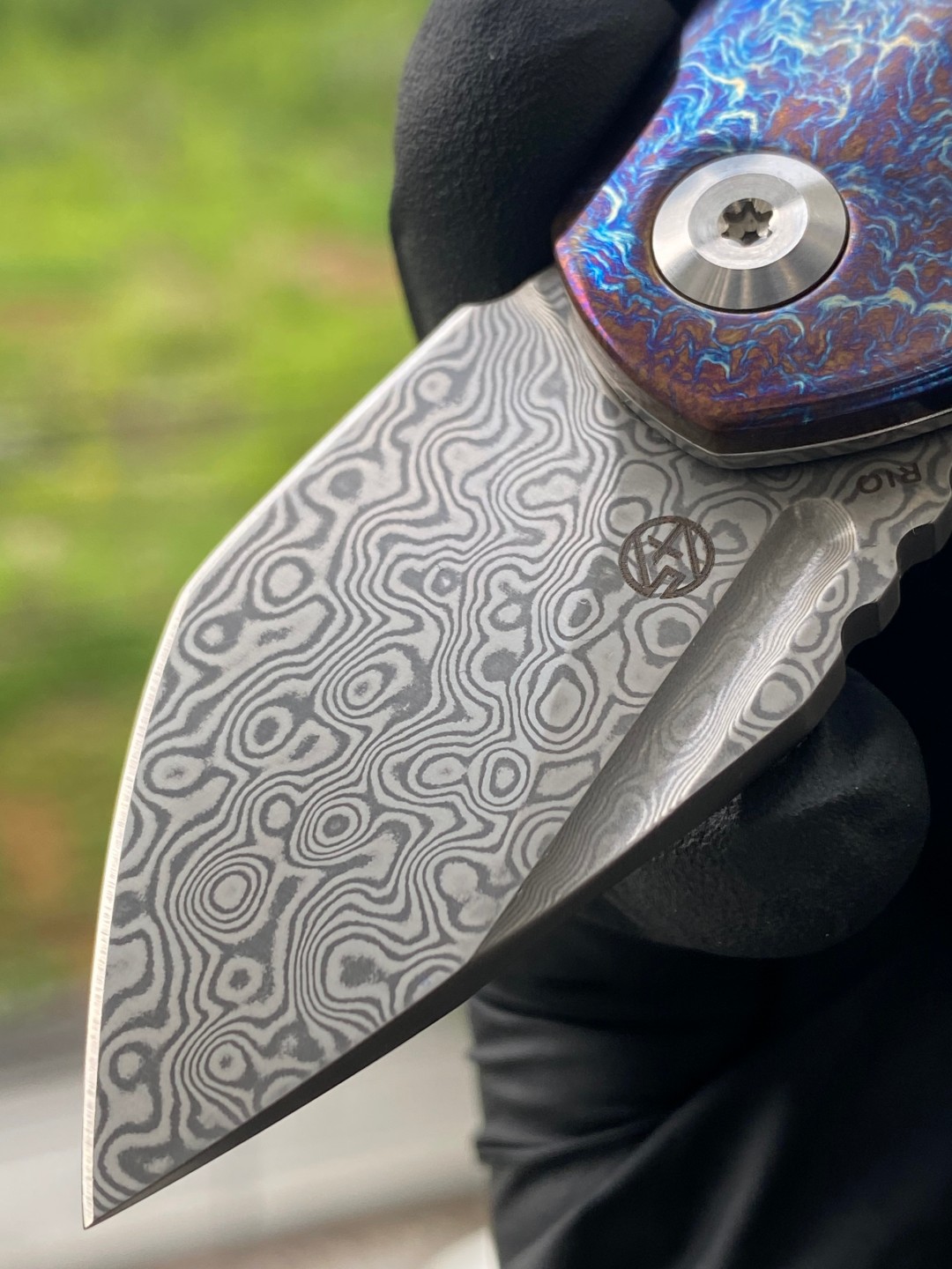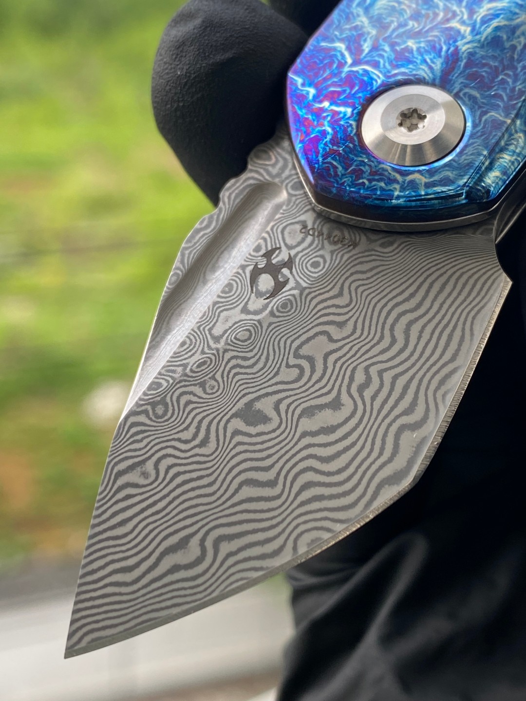 该刀具的刀刃采用Damascus钢材制成,拥有卓越的刃口保持能力,能够轻松应对各种切割任务。刀刃采用下切点设计,使其更适合精细切割和控制。