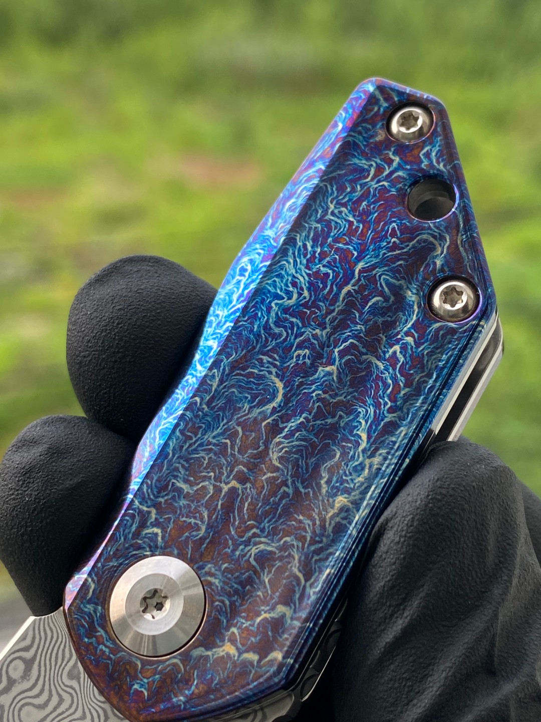 KANSEPT RIO的钛柄经过闪电打击阳极氧化处理,展现出引人注目的外观。钛柄具有出色的耐腐蚀性和轻量化特性,同时提供舒适的握持手感。