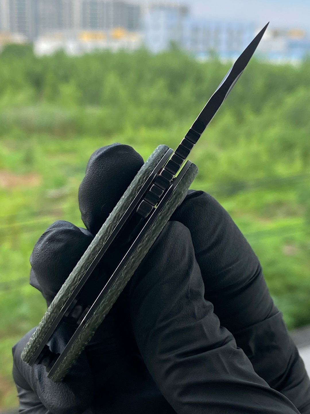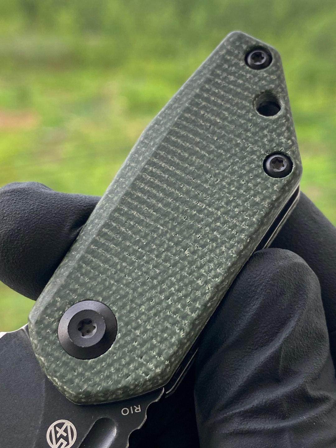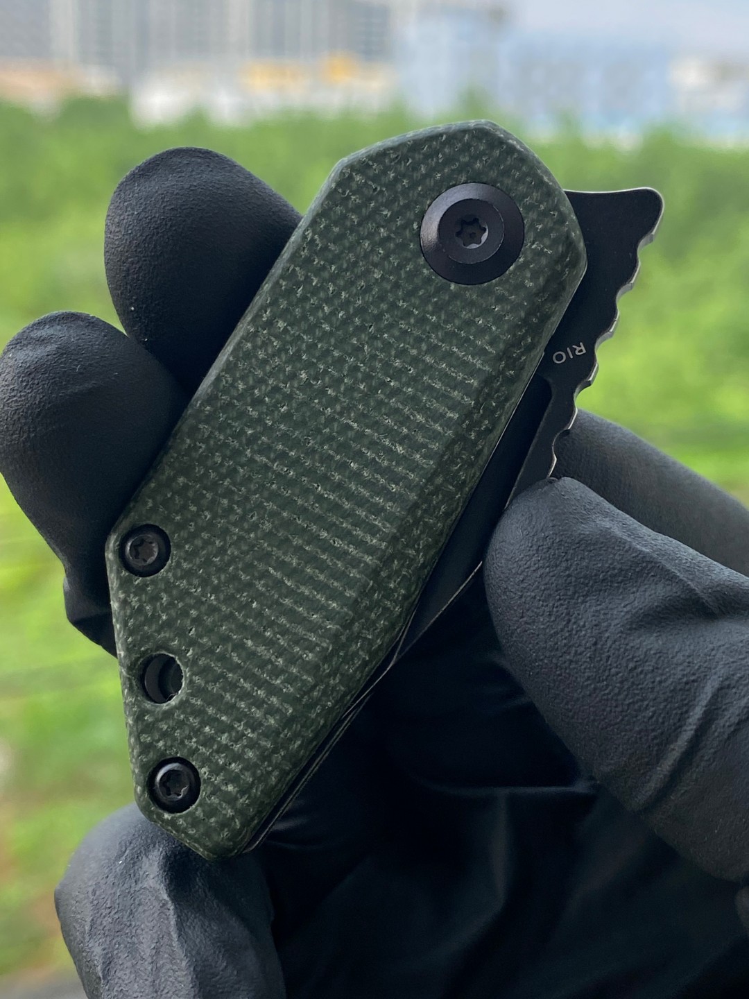 KANSEPT RIO Flipper Knife的手柄采用绿色Micarta材质,提供舒适的握持表面,无论是放在口袋里还是手中都很舒适。刀具的操作非常顺畅,容易启动,给人以愉悦的感觉。
