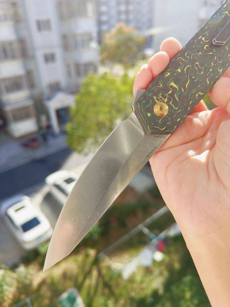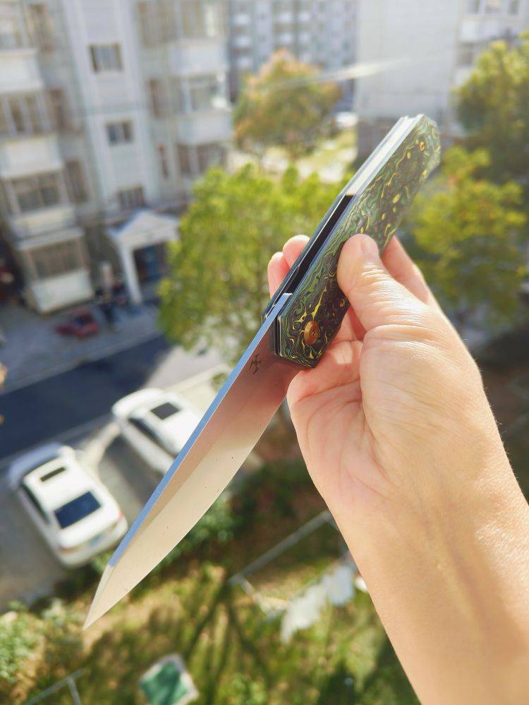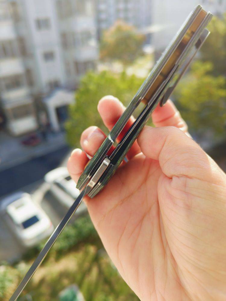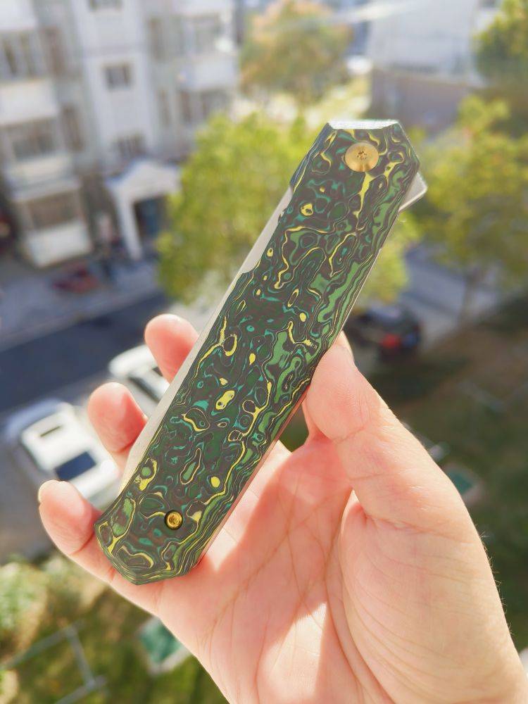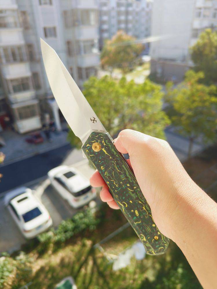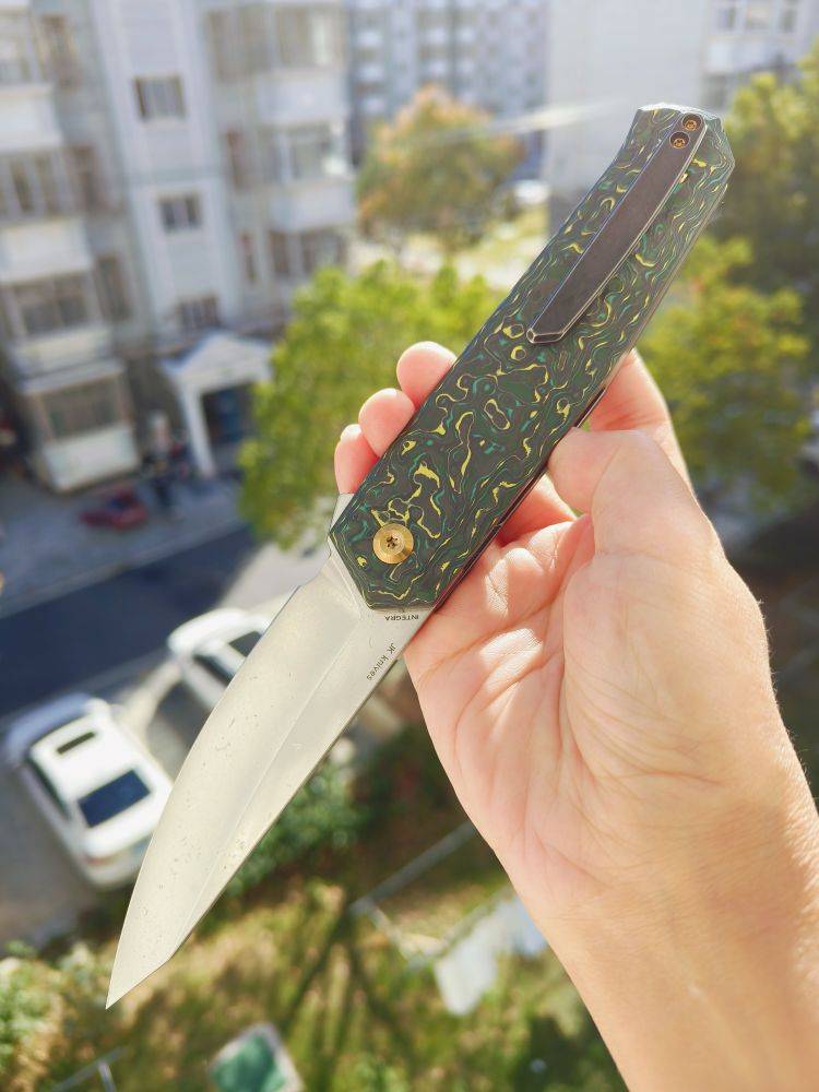 KANSEPT Integra 是一把设计精美的折刀。它采用绿色和黄色碳纤维手柄,配备3.63英寸的CPM S35VN刀片。这款折刀由JK Knives设计,以其坚固的结构、纤薄的外观和城市设计而闻名。