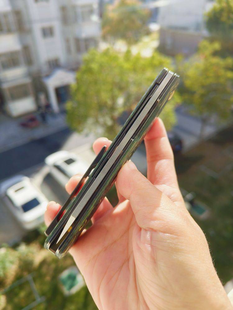 刀片采用高品质的CPM S35VN钢材制成,具有出色的刀刃保持性能和耐用性,能够保持锋利度很长时间。折刀采用陶瓷滚珠轴承,提供顺畅的翻转开启方式。同时,它还配备了钛制口袋夹,支持顶部插入式携带。