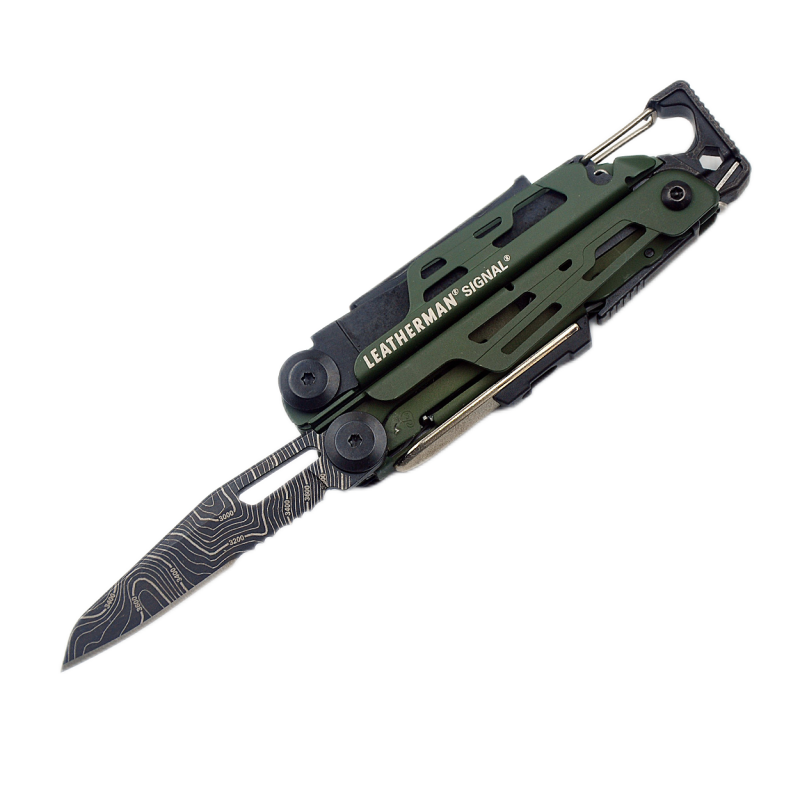 - 多功能设计: Leatherman Signal 是一把集成了多种工具的多功能刀具。除了传统的多工具功能(刀片、锯齿刃、螺丝刀、开瓶器等),它还包括一些专为户外使用设计的功能,如火种棒和紧急哨子。