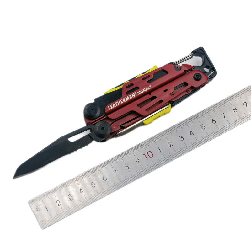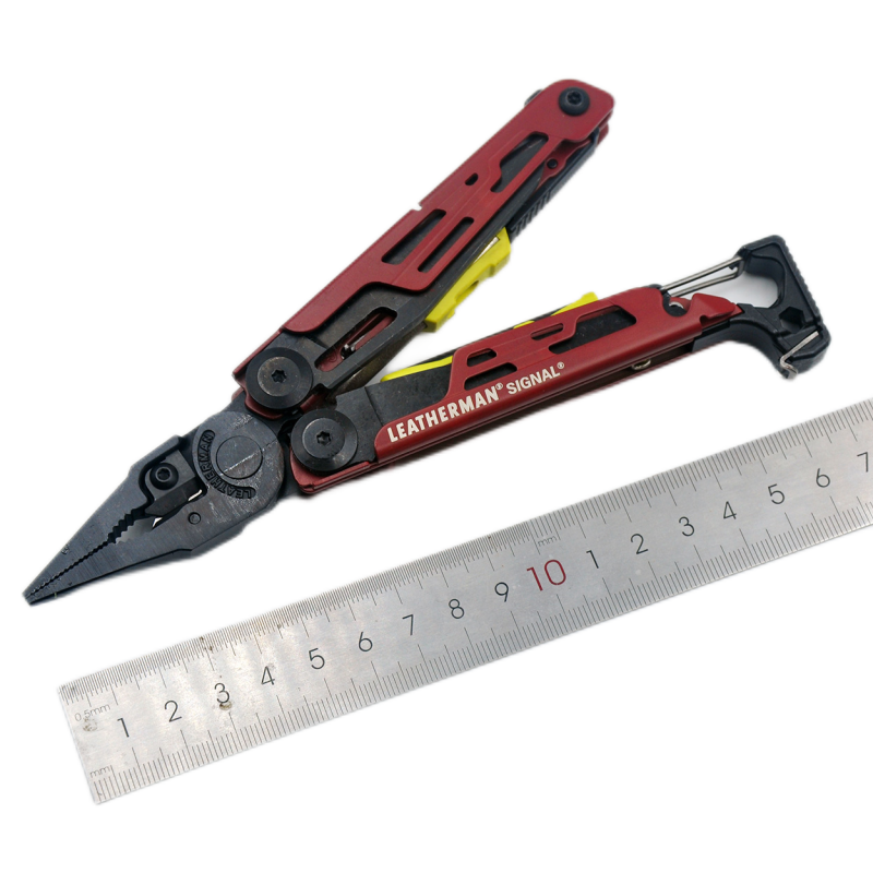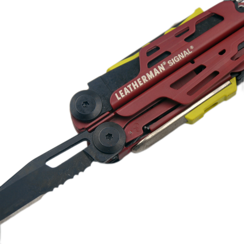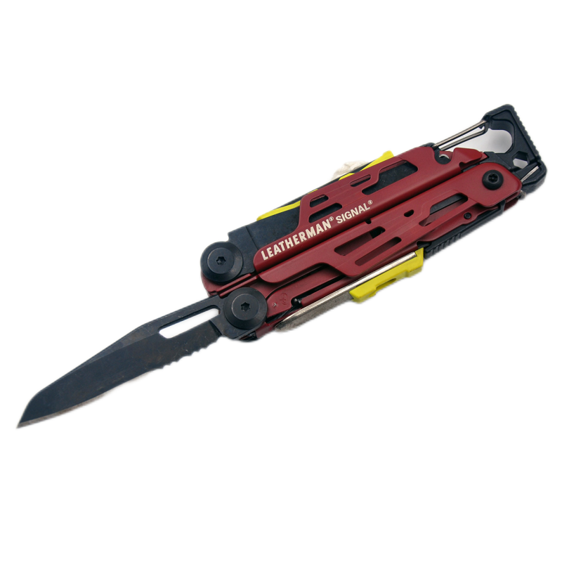 - 多功能设计: Leatherman Signal 是一把集成了多种工具的多功能刀具。除了传统的多工具功能(刀片、锯齿刃、螺丝刀、开瓶器等),它还包括一些专为户外使用设计的功能,如火种棒和紧急哨子。