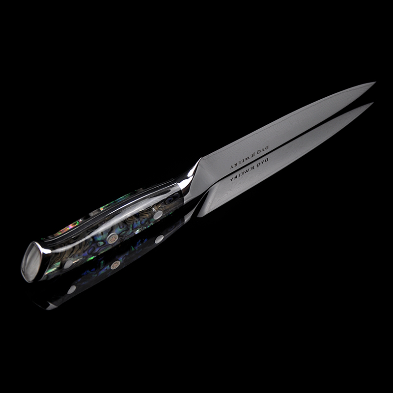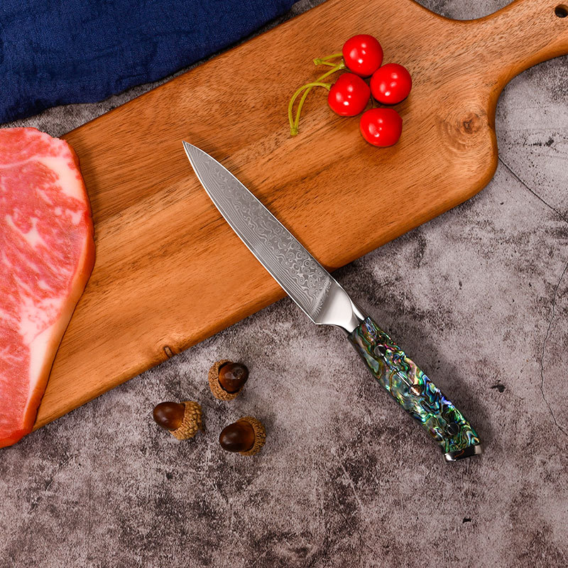 DYQ珠宝 匠心系列 大马士革钢 鲍贝柄 5寸水果刀 338