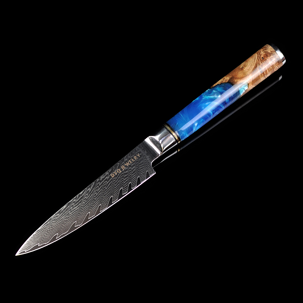 DYQ珠宝 臻心系列 大马士革钢 树脂柄 5寸万用刀 235