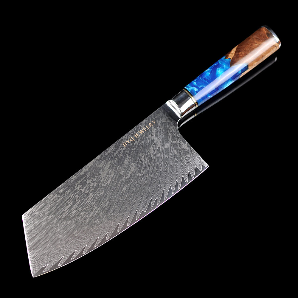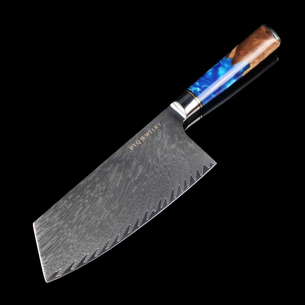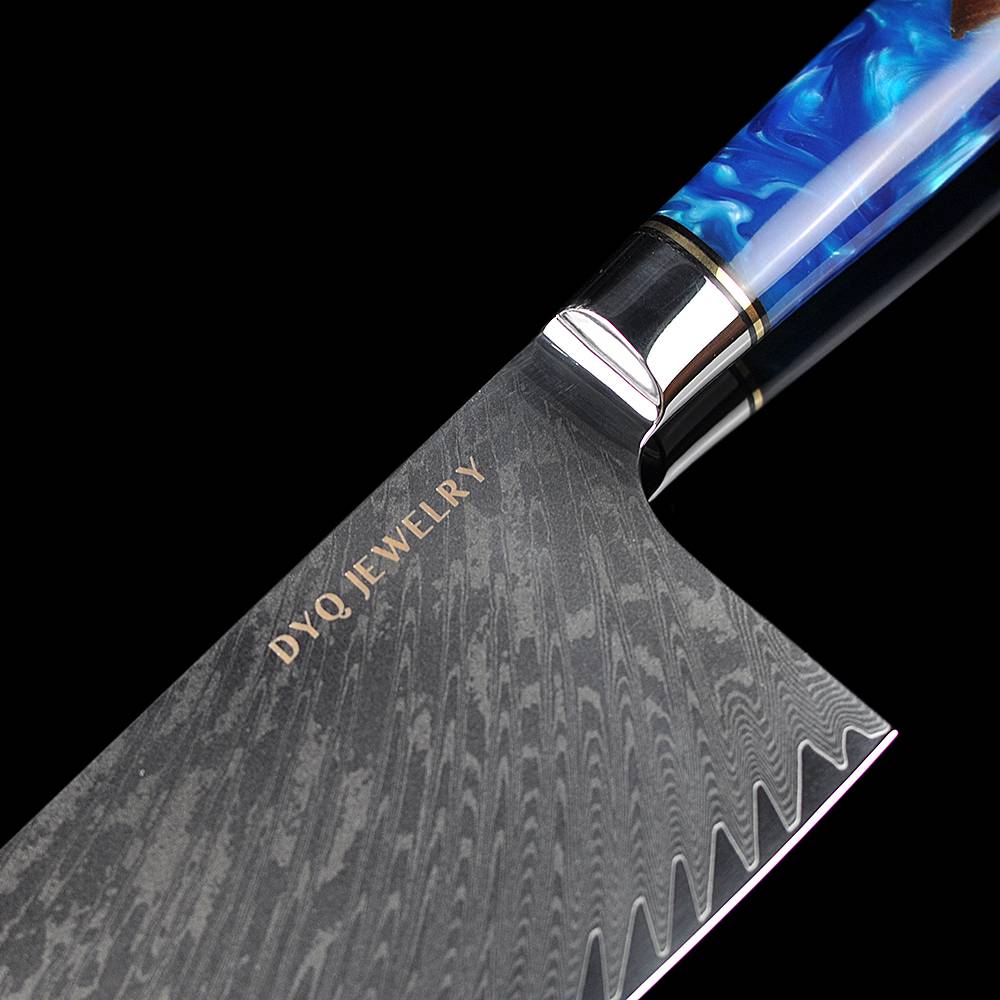 DYQ珠宝 臻心系列 大马士革钢 树脂柄 7.5寸中华刀 568