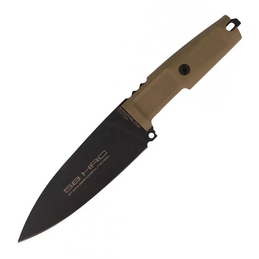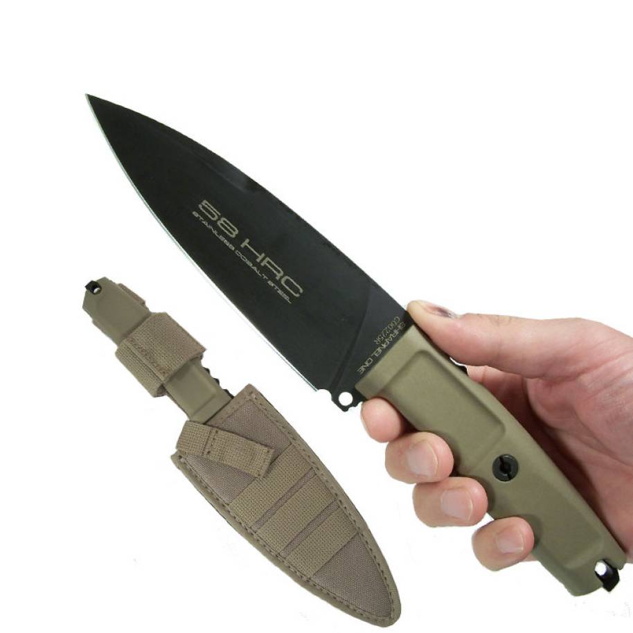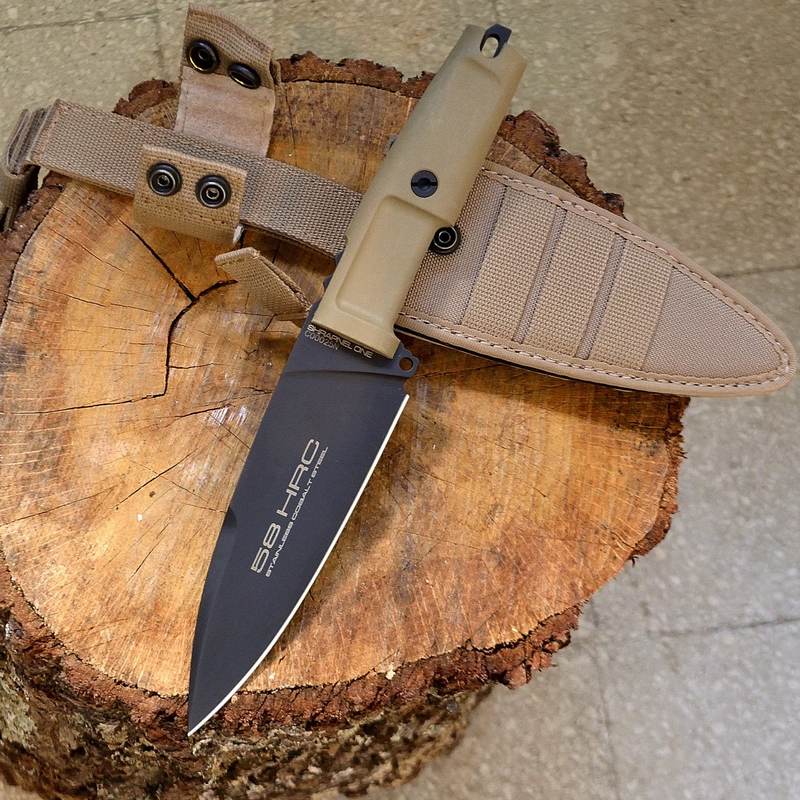 重量克:285 重量盎司:10.05 刀片长度(毫米):157 刀片长度(英寸):6.18 总长度(毫米):287 总长度(英寸):11,29 刀片厚度(毫米):6.3 刀片厚度(英寸):0.24 刀片材质:BÖHLER N690 钢 (58HRC) 刀片精加工:MIL-C-13924 抛光 主磨:平面 手柄材质:FOPRENE