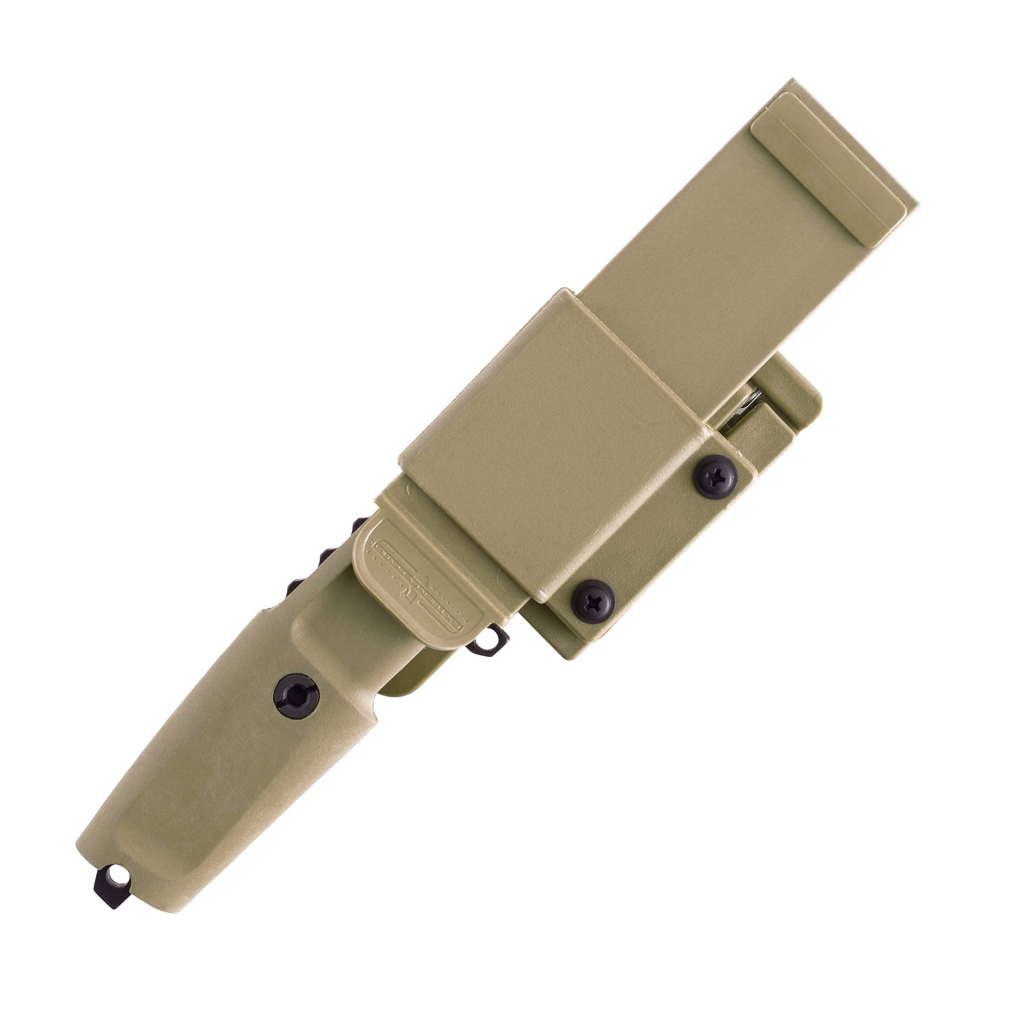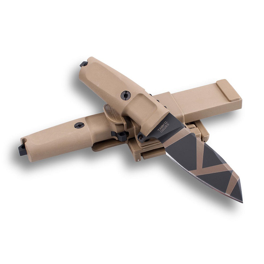 TASK 多用途刀的紧凑型。除了刀片和刀柄尺寸减小之外,TASK C 与全尺寸 TASK 的不同之处在于具有平坦的(非部分锯齿状)边缘。随附的硬护套可垂直、水平或倾斜(45° 角)佩戴。Task C 是Extrema Ratio 的Task万能刀的紧凑版本。除了较短的刀片和手柄之外,Task C 与原始 Task 的不同之处在于其光滑(而不是部分锯齿状)切削刃。稳定的刀尖非常适合繁重的工作,并且还具有出色的切割性能。即使在潮湿或寒冷的条件下,由 Forprene 制成的防滑手柄也能始终提供牢固的抓握力。它可以轻松拆卸,以确保刀具得到最佳清洁。供货范围包括带有 Tek-Lok 的硬塑料护套,可垂直和水平佩戴。