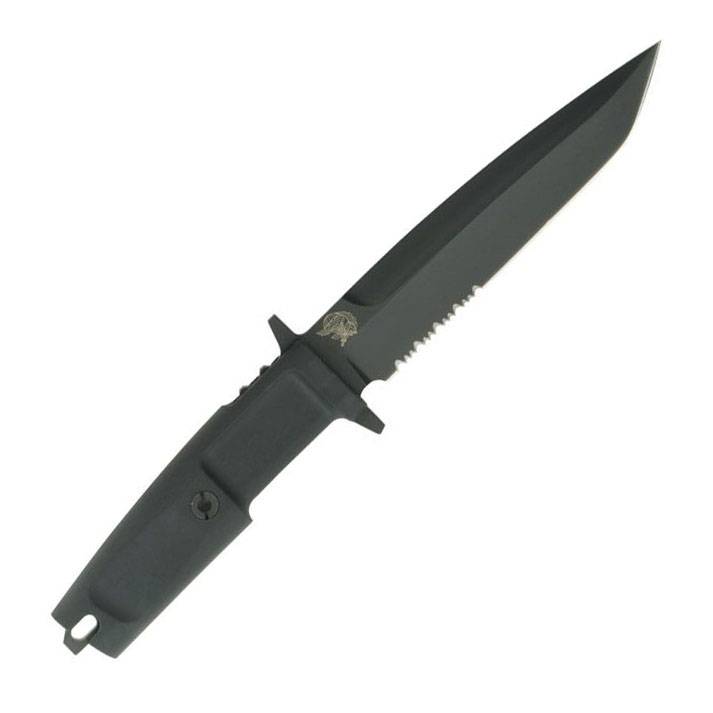 这是一把典型的战斗刀,为著名的意大利特种部队第 9 伞兵突击团“Col Moschin”定制,并于 2002 年正式采用。它代表了对阿尔迪蒂(Arditi)的当代改造——这支历史力量追随了第九步行者的脚步——它具有不对称的刀片和笔直但方向敏感的刀柄。设计轻巧、方便,刀柄处保持平衡,刀尖具有高穿孔能力。每个新的“Incursore”(突击伞兵)都会配发一把这样的刀,并接受训练以充分利用它。