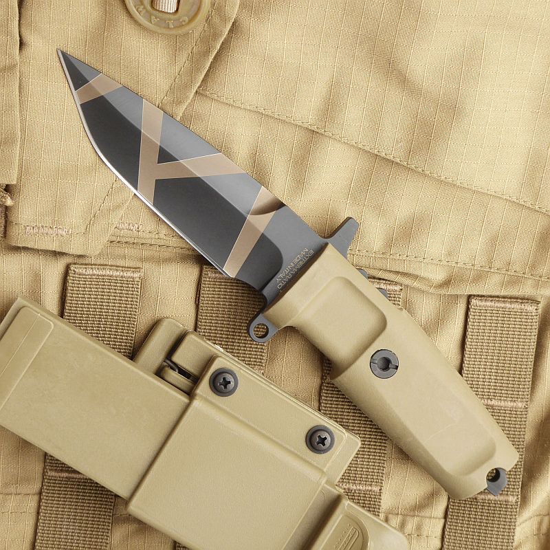 重量克:202 重量盎司:7,1 刀片长度(毫米):110 刀片长度(英寸):4.3 总长度(毫米):214 总长度(英寸):8,4 刀片厚度(毫米):6,3 刀片厚度(英寸):0.25 刀片材质:BÖHLER N690 钢 (58HRC) 刀片精加工:MIL-C-13924 抛光 主磨:剃刀 手柄材质:FOPRENE