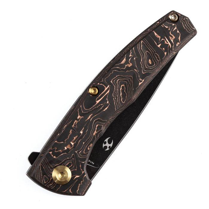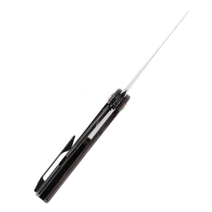 产品描述:KANSEPT AGI翻转折刀采用Twill碳纤维+钛合金手柄,配备2.94英寸的Dmascus叠层钢刀片,由设计师Michal Galovic和Michal Komorovsky设计。该折刀以其流线型的外观设计而闻名,刀片采用Dmascus叠层钢制成,适用于各种实用任务,包括切割、精密工作、穿刺和其他小型任务。手柄采用Twill碳纤维和黑色磨砂钛合金材质,结构精巧,提供舒适和稳定的握持感。折刀采用框架锁定系统,并配备球轴承,确保顺畅的开合动作。