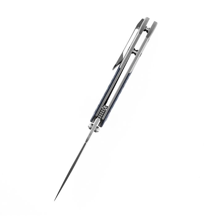 ✔黑色和蓝色 G10 + 钛手柄,握持表面光滑,放在口袋或手中舒适。