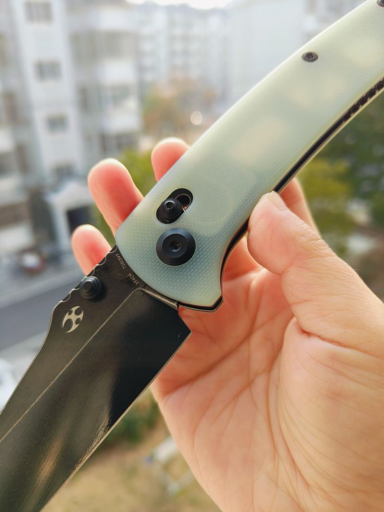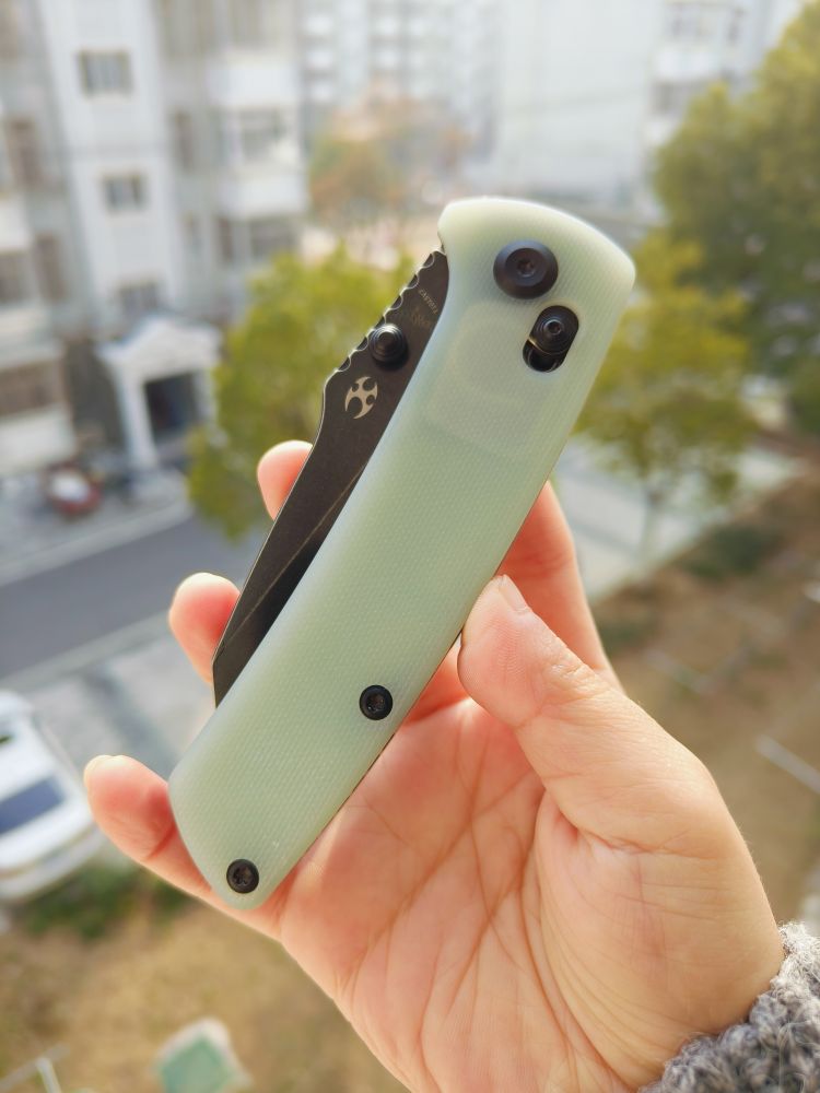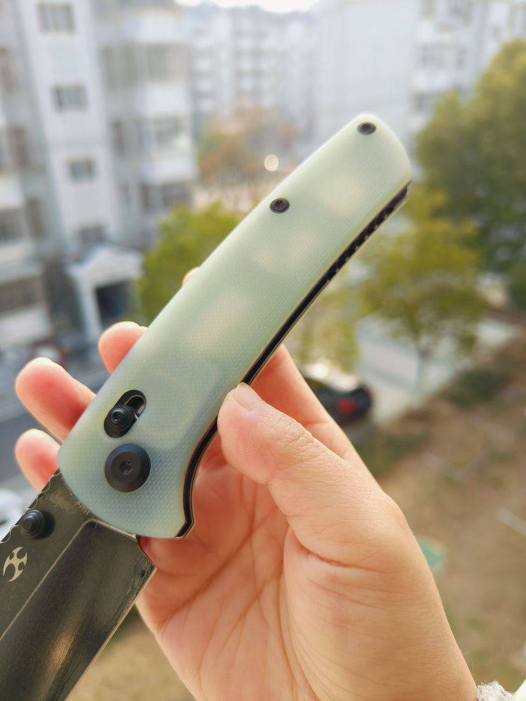 - 握柄材质: G10 握柄,轻巧且坚固,增添亮眼的外观。