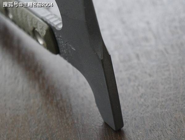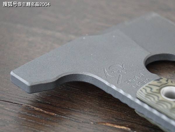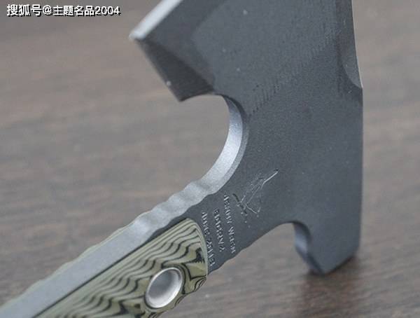 为了防止钢材的耐腐蚀性,整把斧子裸露的出来的钢材均采用了灰色的Cerakote陶瓷涂层处理,不仅可以提高钢材的耐腐蚀性,还可以减少反光。
