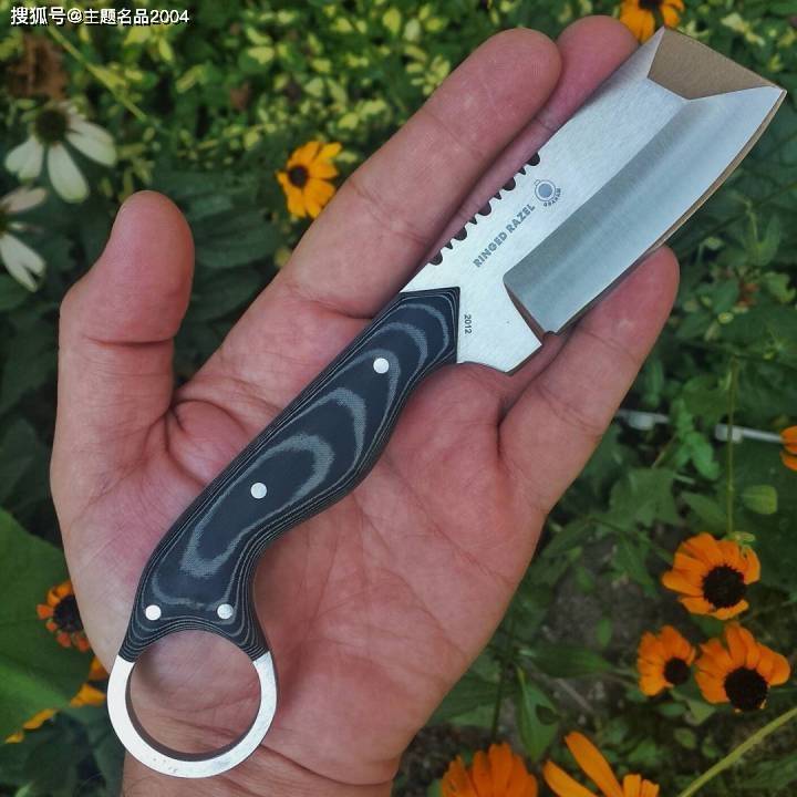 它的刀片本身是一个改良版本的水滴头刀形,刀片带有部分锯齿设计。