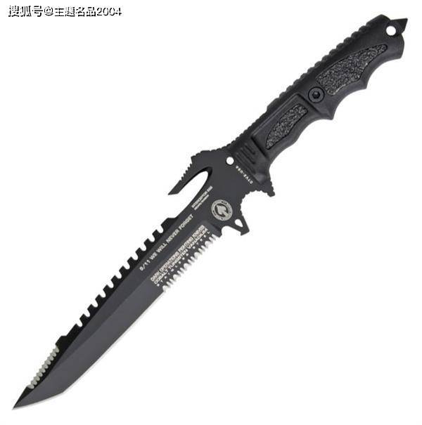 它的刀腹很深,刀背上有很长的锯齿设计。