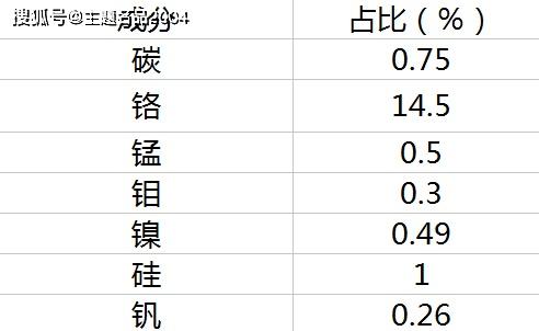 钼,在钢材中添加钼,有助于提高钢的焊接能力和耐腐蚀和耐磨性。 通过增加钢的晶格应变,使钢具有更好承受力,让刀具在大力劈砍的时候不易变形。这种成分通常不添加在不锈钢中,但是由于低密度和低价格,它已经变得越来越普遍,并且已经开始取代现在较少的钨成分。