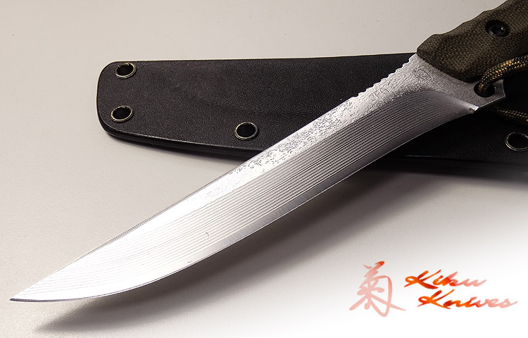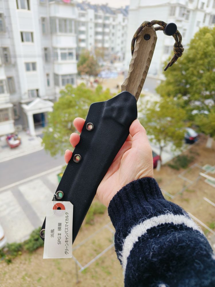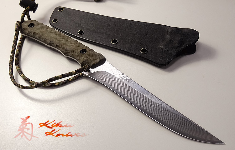 松田菊男Kiku HAMAKAZE 浜风绿电木柄直刀由日本刀匠松田菊男先生手工锻造之战术直刀。刀刃特别选用大马士革夹SPGII钢材, 经由松田菊男亲手研磨打造而成;绿电木握柄并附战术刀鞘,刀,完整显出松田男生的风格,是喜爱松田菊男刀品者最佳选择之一。