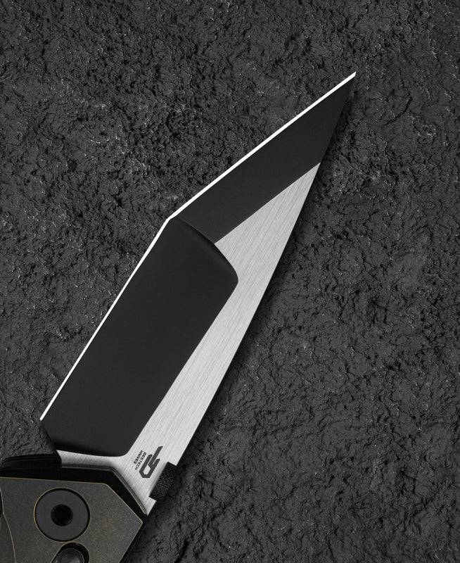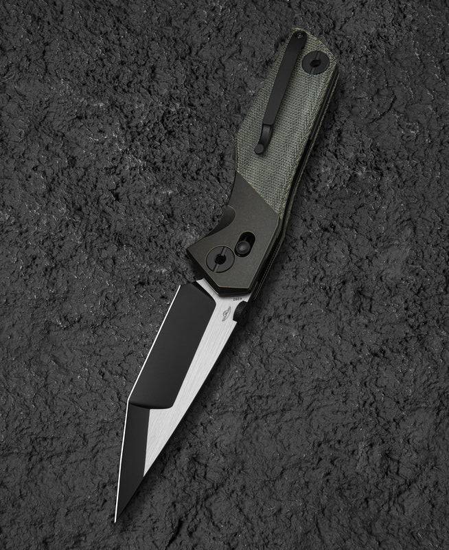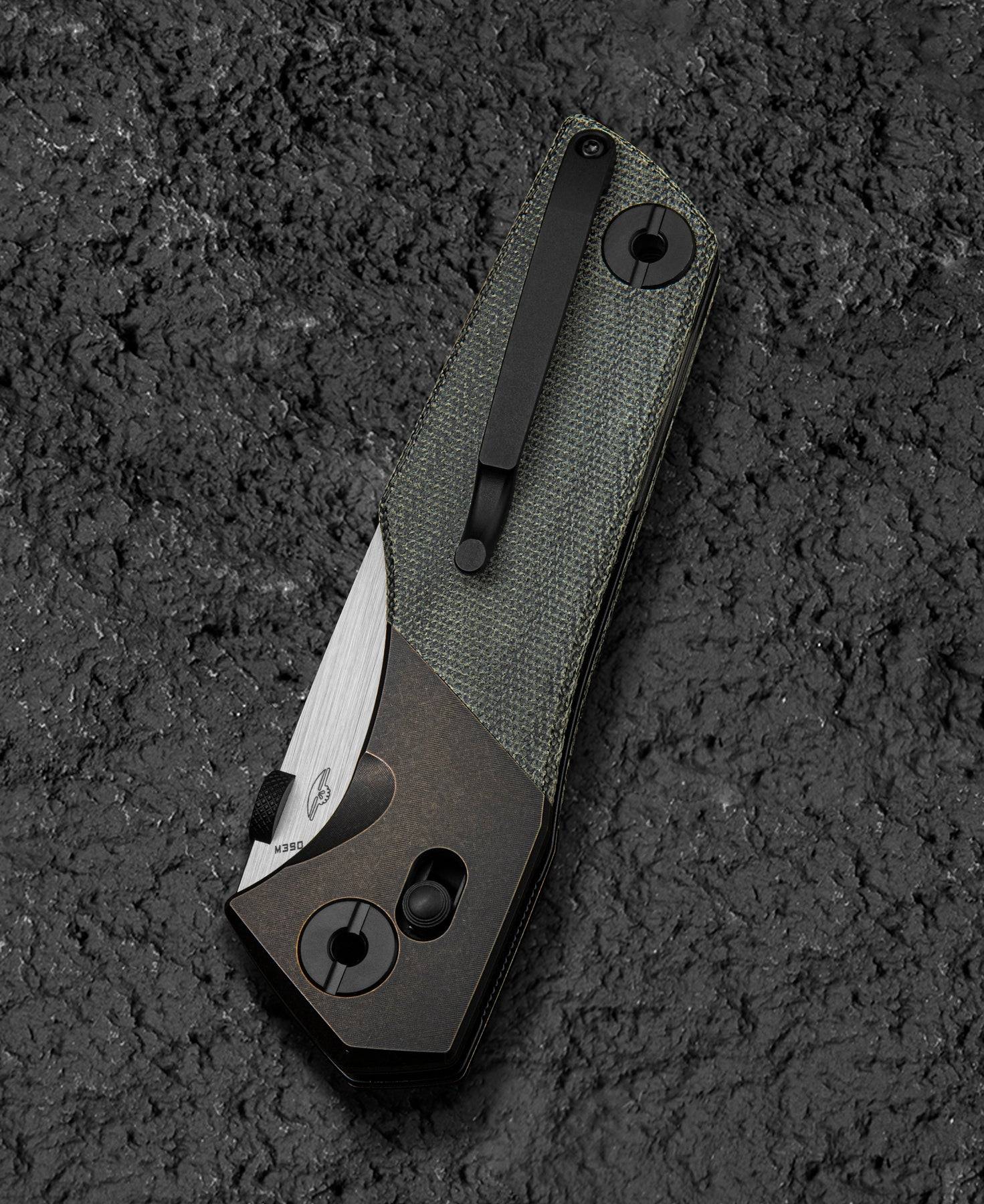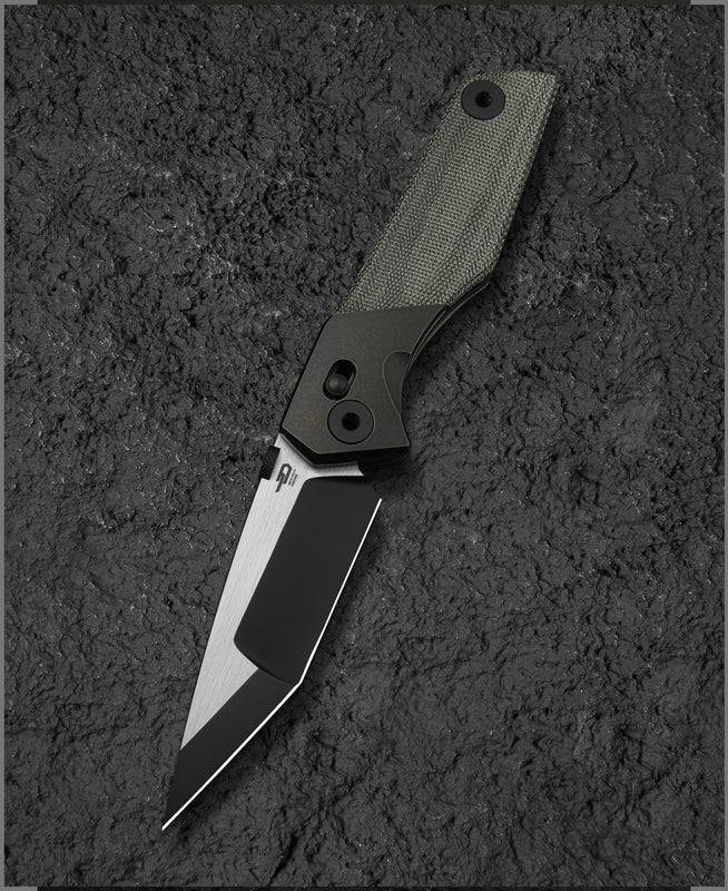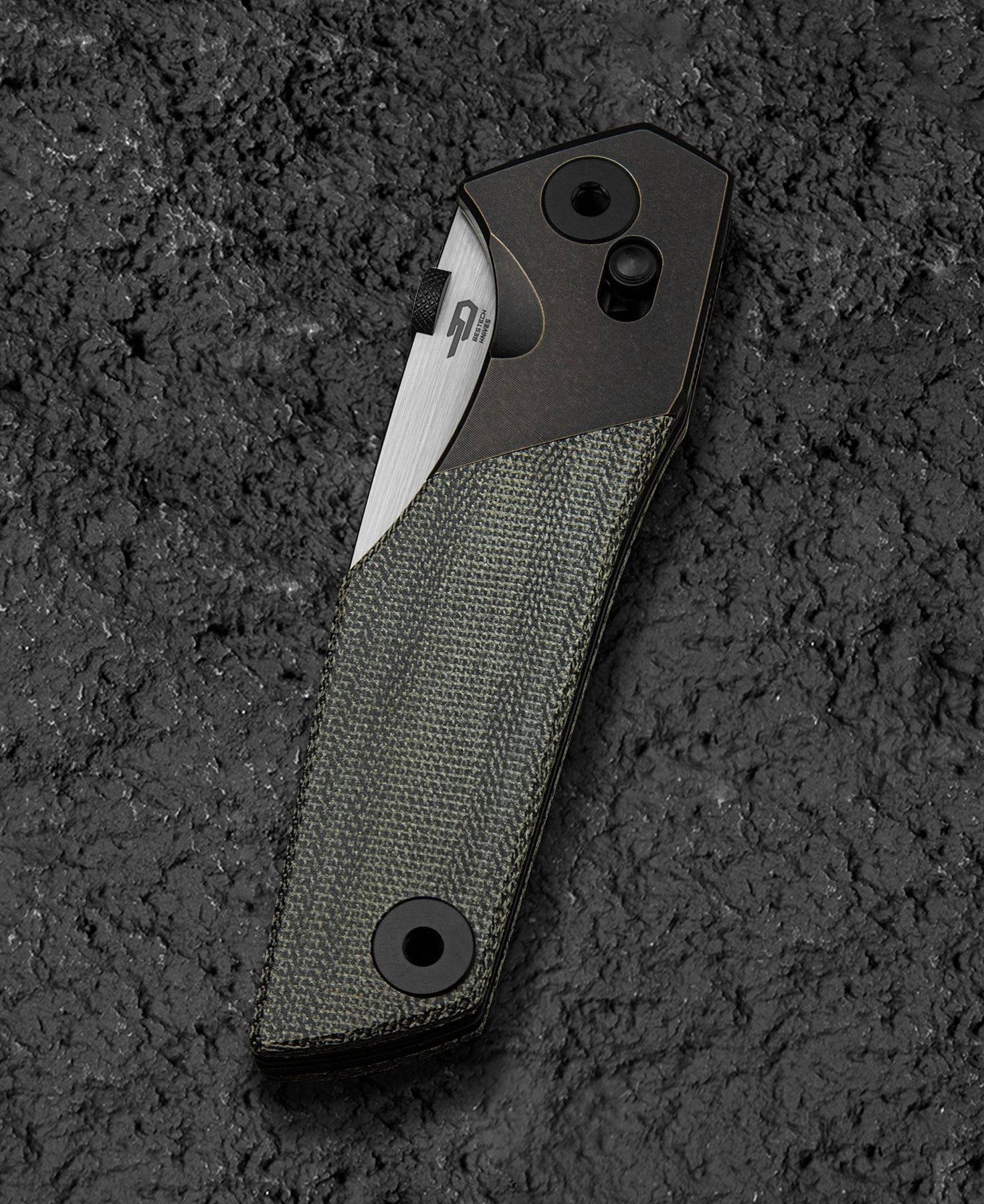BESTECH CETUS 是一款精美而功能强大的折刀,以其高品质的材料和精湛的工艺而闻名。它的设计融合了黑色青铜钛金属和黑色帆布米卡塔嵌入物,展现出一种独特而引人注目的外观。