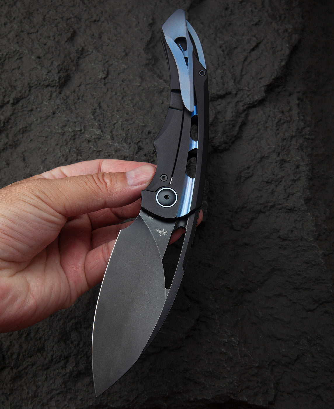 这款折刀采用S35VN钢材制成的刀刃,经过珠光抛光和石洗处理,提供出色的耐磨性和切割性能。刀刃长度为3.97英寸(约100.8毫米),厚度为0.2英寸(约5.0毫米),适合各种剪切任务和精细工作。