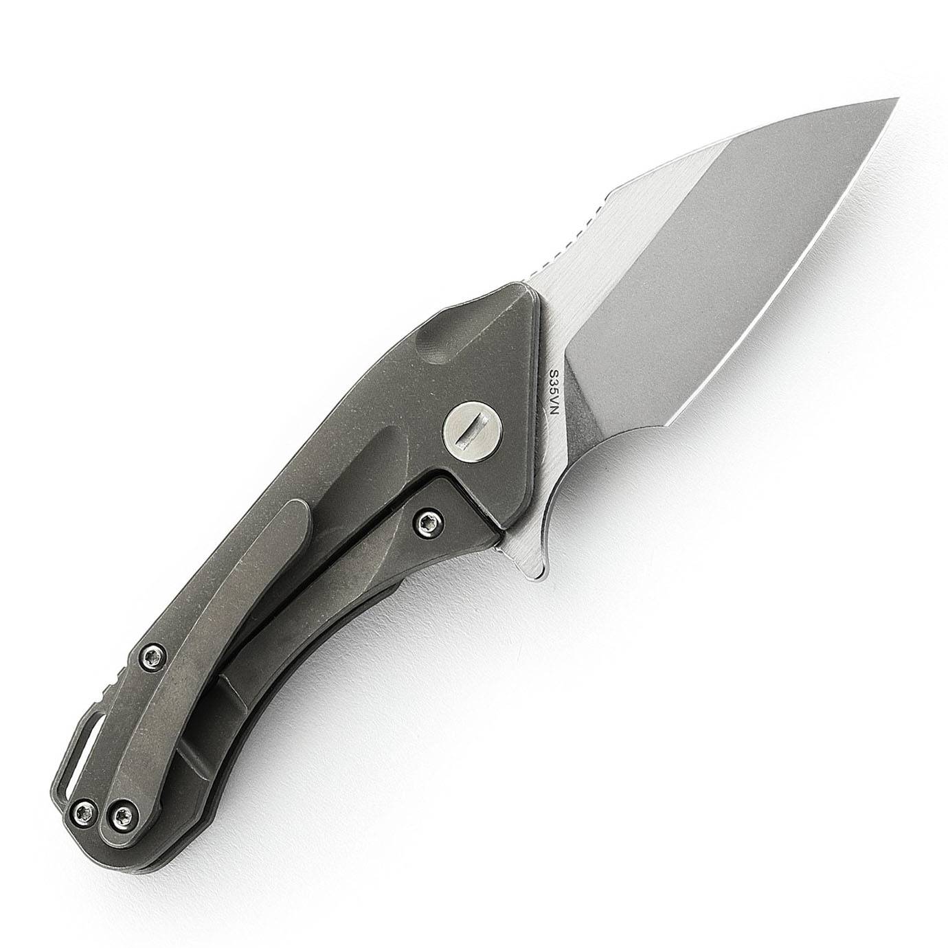 BESTECH GOBLIN BT1711A 是 Bestech Knives 的钛系列折叠刀。它采用钛合金制作的刀柄和一把由CPM-S35VN 钢打造的2.047英寸(52毫米)刀片。刀片采用石洗和抛光处理。该刀具采用框锁和翻转装置,方便开启和安...