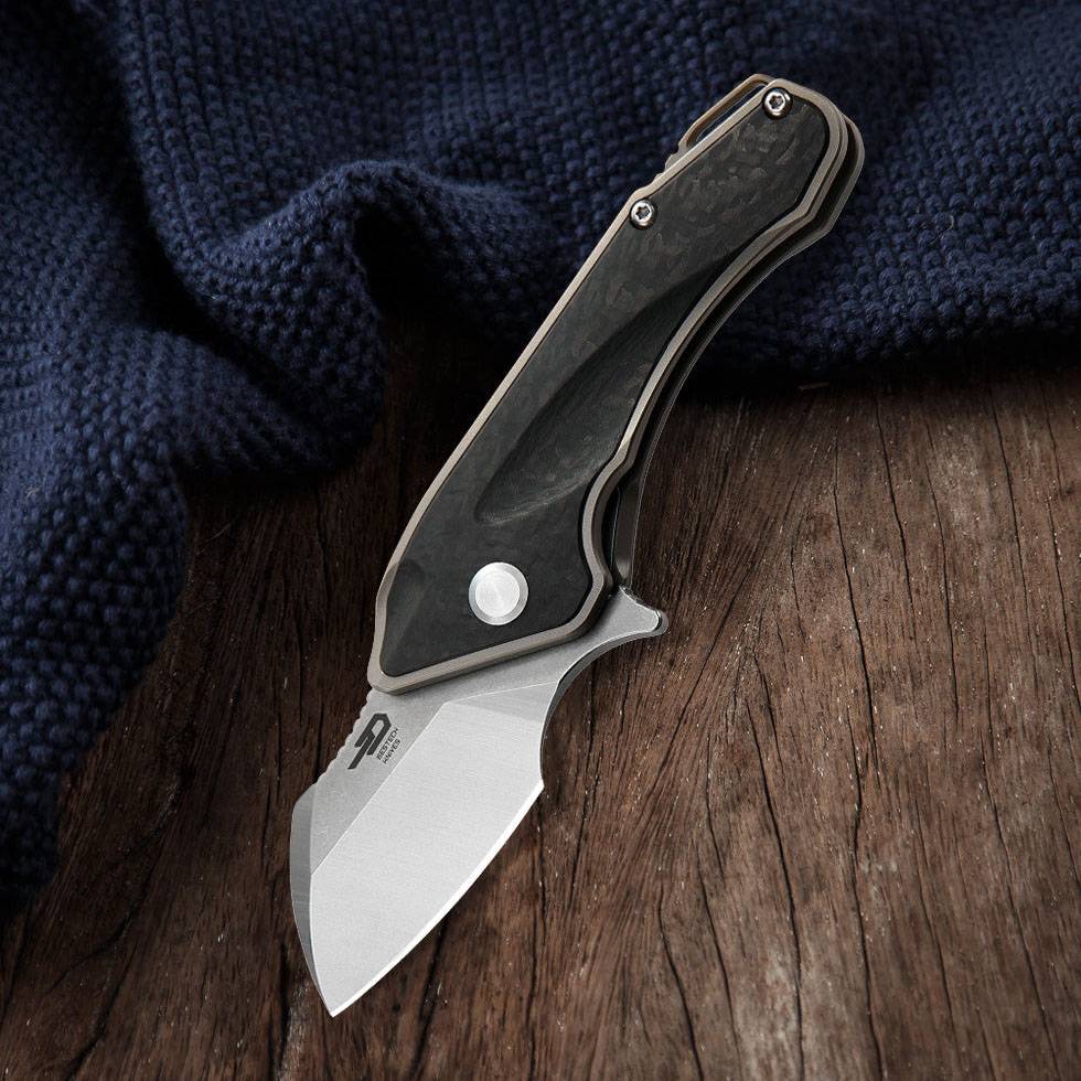 BESTECH IMP BT1710A 是 Bestech Knives 的钛系列折叠刀。它的刀柄采用钛和碳纤维镶嵌设计,既时尚又耐用。刀片采用CPM-S35VN 钢打造,长度为1.732英寸(44毫米),刀片经过石洗和抛光处理。该刀具采用框锁和翻转装置,方便开启和安全锁定。