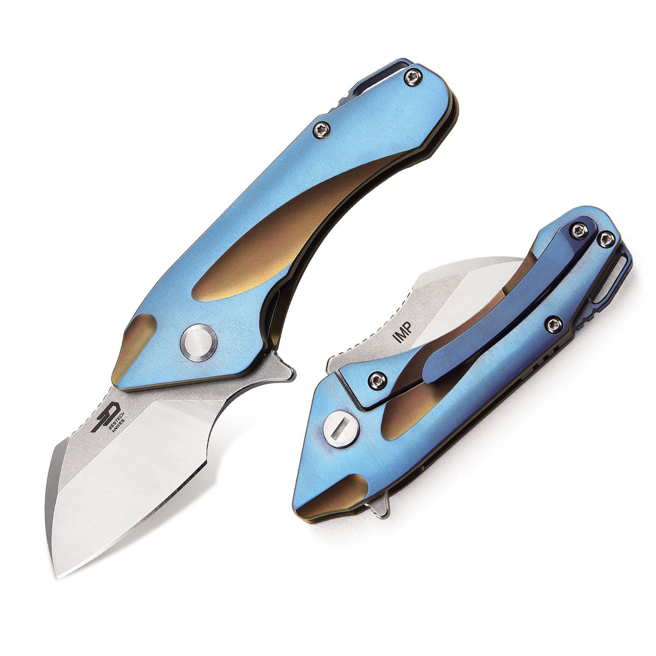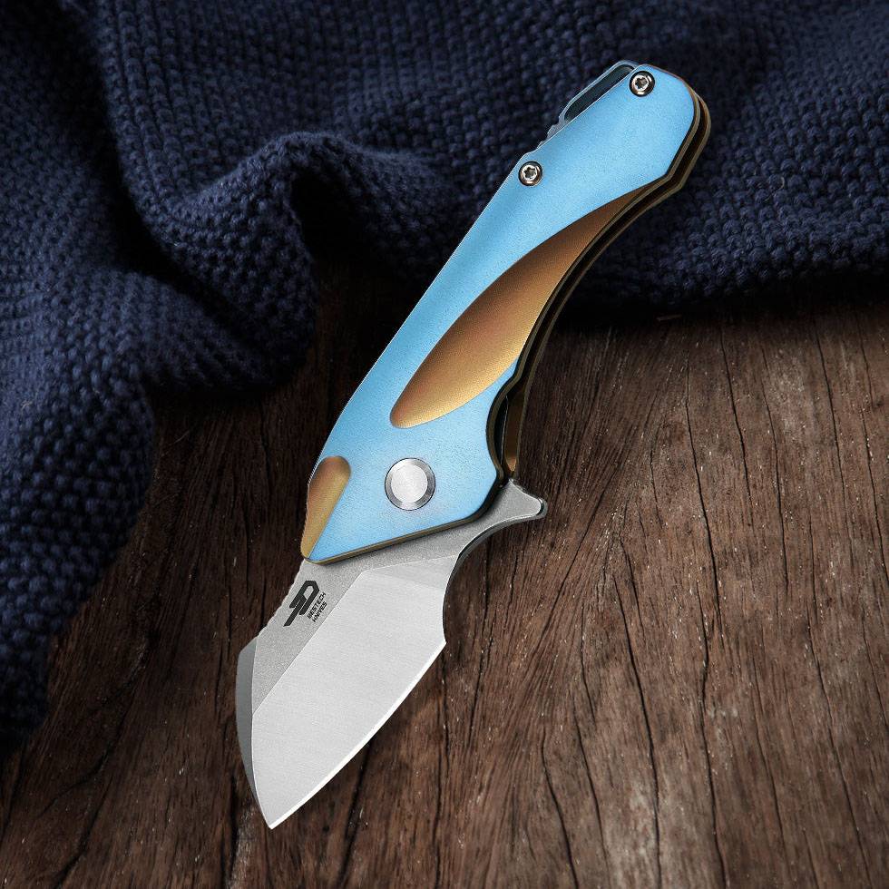 BESTECH IMP BT1710A 是 Bestech Knives 的钛系列折叠刀。它的刀柄采用钛和碳纤维镶嵌设计,既时尚又耐用。刀片采用CPM-S35VN 钢打造,长度为1.732英寸(44毫米),刀片经过石洗和抛光处理。该刀具采用框锁和翻转装置,方便开启和安全锁定。