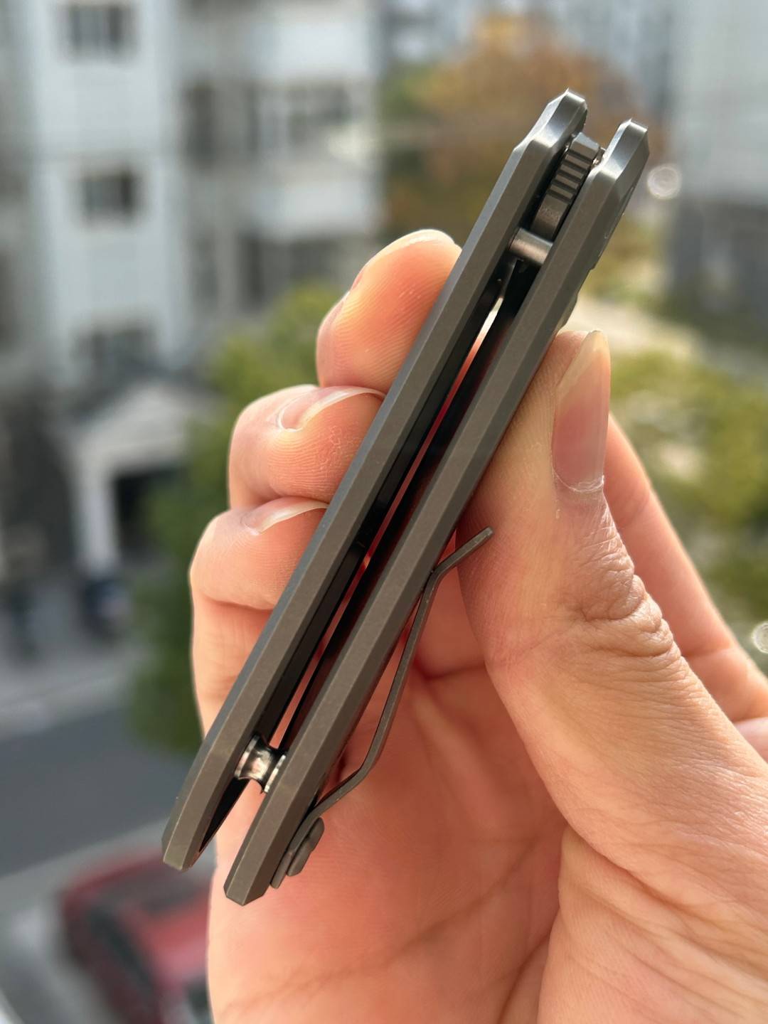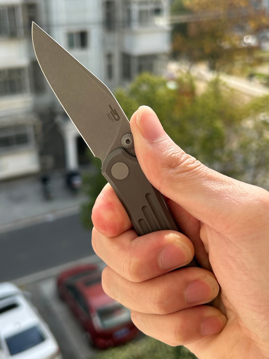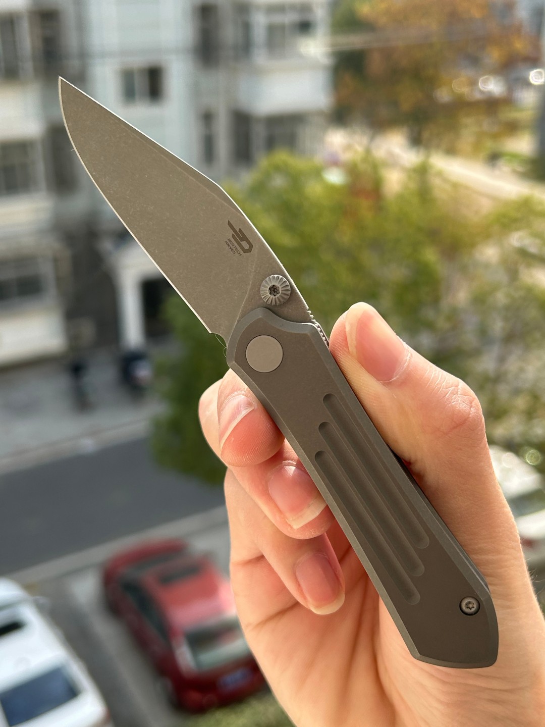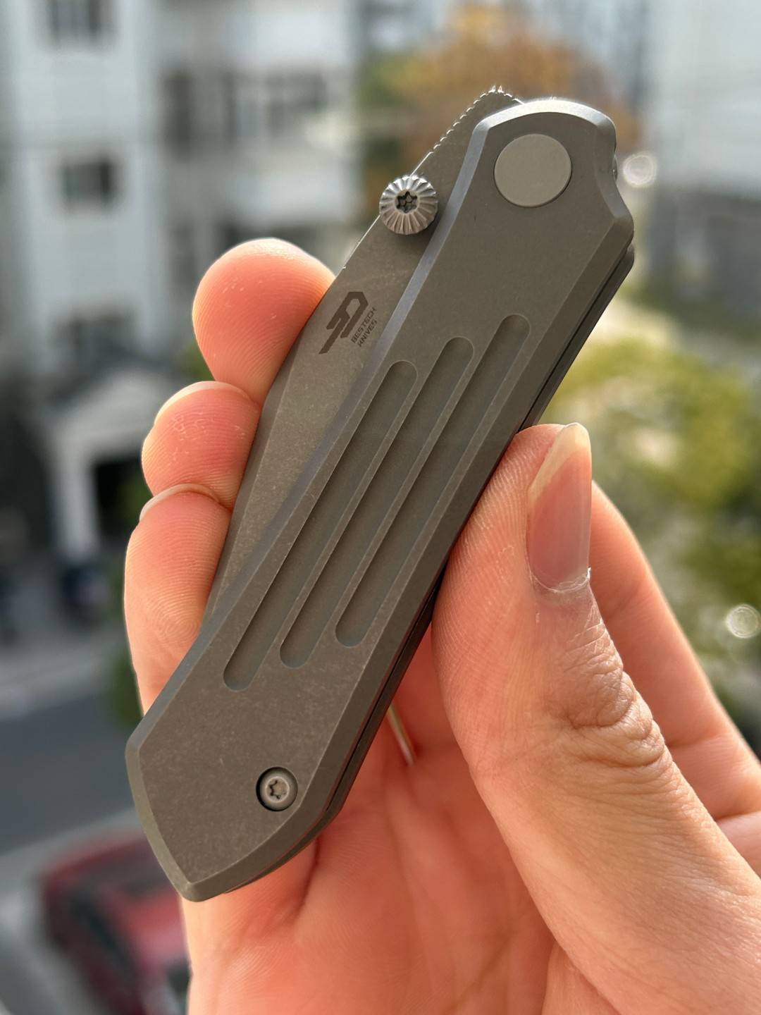 BESTECH ICARUS BT2302D 的刀柄采用钛制材料制成,经过暗色玻璃喷砂处理,呈现出独特的外观。整体长度为6.21英寸(157.8毫米),折叠长度为3.57英寸(90.6毫米),方便携带。