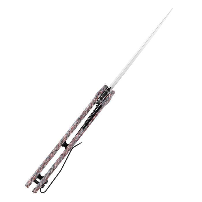 Kansept K1001 Kryo 具有石磨滴水尖端刀片和令人印象深刻的碳纤维手柄。S35VN 刀片提供可靠的刀刃,在户外和城市环境中实现一致的切割性能。定制细节包括金色阳极氧化钛合金枢轴和黑色涂层双面 3D 铣削钛合金口袋夹。滚珠轴承系统可实现平稳打开,钛框架锁将刀片牢固地固定在打开位置。