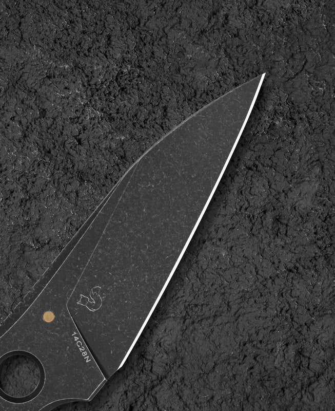 材质:14C28N 刀片表面处理:深色石洗 颜色:黑色 总长度:7.69 英寸(195.3 毫米) 刀片长度:3.19 英寸(81 毫米) 刀片厚度:0.142 英寸(3.6 毫米) 刀重量:2.7 盎司(76.4 克) 设计师:Vulpex ...