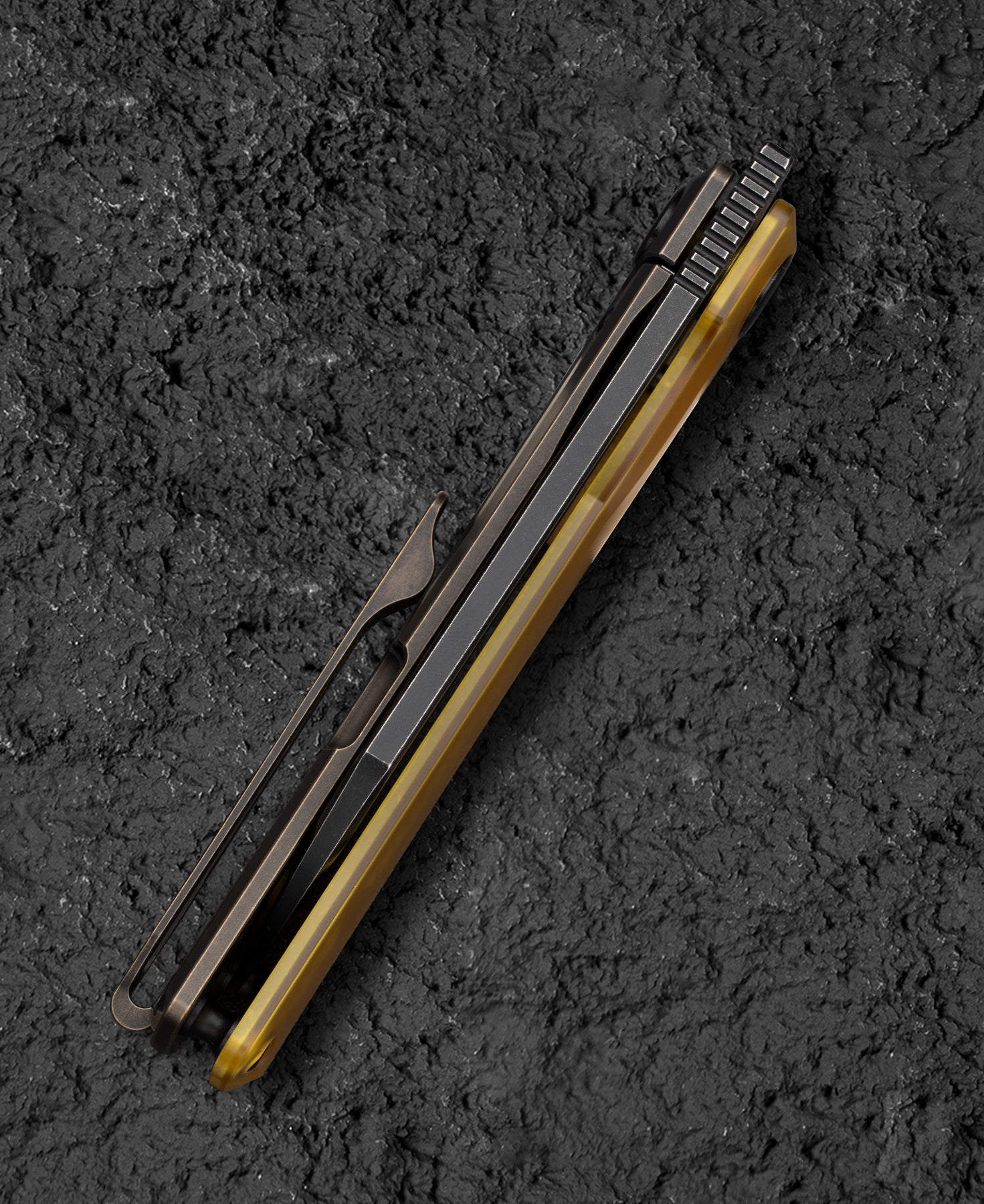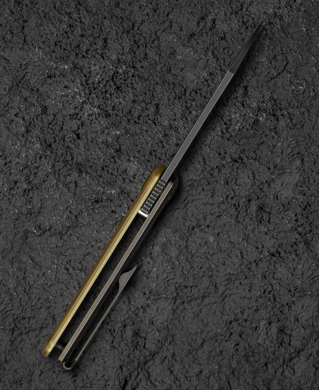 刀片材质:M390 刀片表面处理:黑色石洗 手柄材质:Ultem+钛 机制: 带框架锁的 Flont Flipper 手柄颜色: 古铜黑色 总长度:7.08 英寸(180 毫米) 闭合长度:4.13 英寸(105 毫米) 刀...