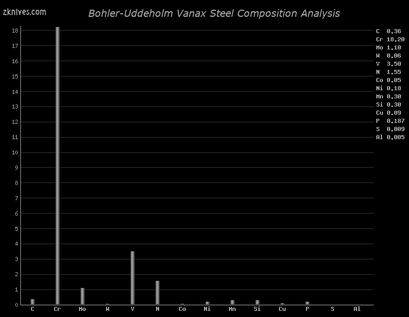 Bohler-Uddeholm Vanax 钢系列的演变。第三代粉末冶金氮钢。据我所知,大约在 2016 年开始出现刀具。Bohler-Uddeholm 自己的出版物也列出了与熟悉的ELMAX、M390、N690和N680一起作为良好刀具钢材的列表。正如新合金经常发生的那样,它有几个名字。Alpha Knife Supply 将其出售为 Vanax,Shirogorov 将其称为 Vanax 37,到目前为止,这些是我在网上找到的名称变体。根据记录,制造商使用的官方名称是 - Vanax SuperClean。