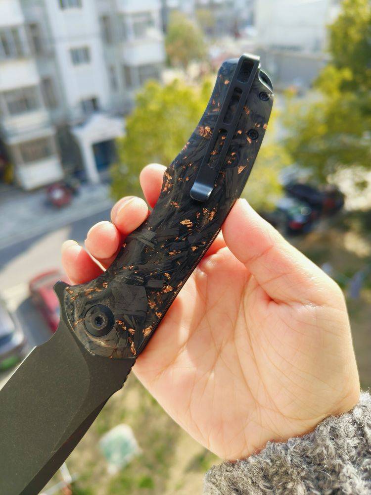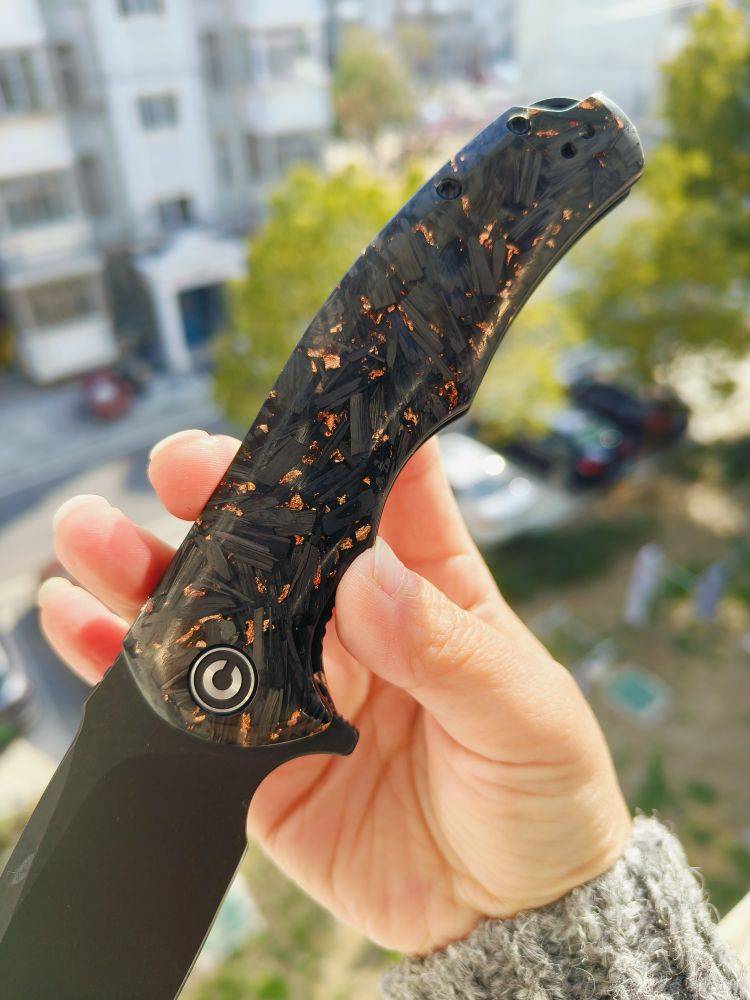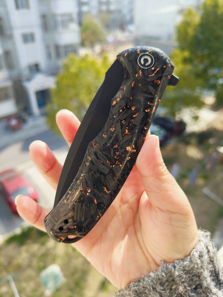 手柄材料:透明树脂中的碳纤维丝和铜丝手柄