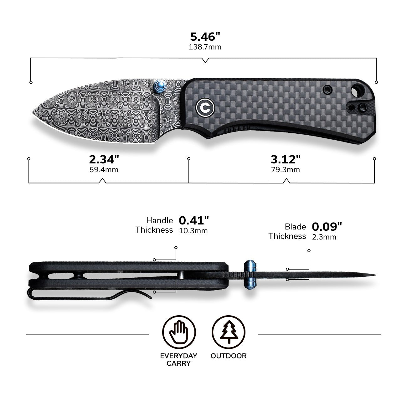 刀片长度:2.34 英寸/59.4 毫米