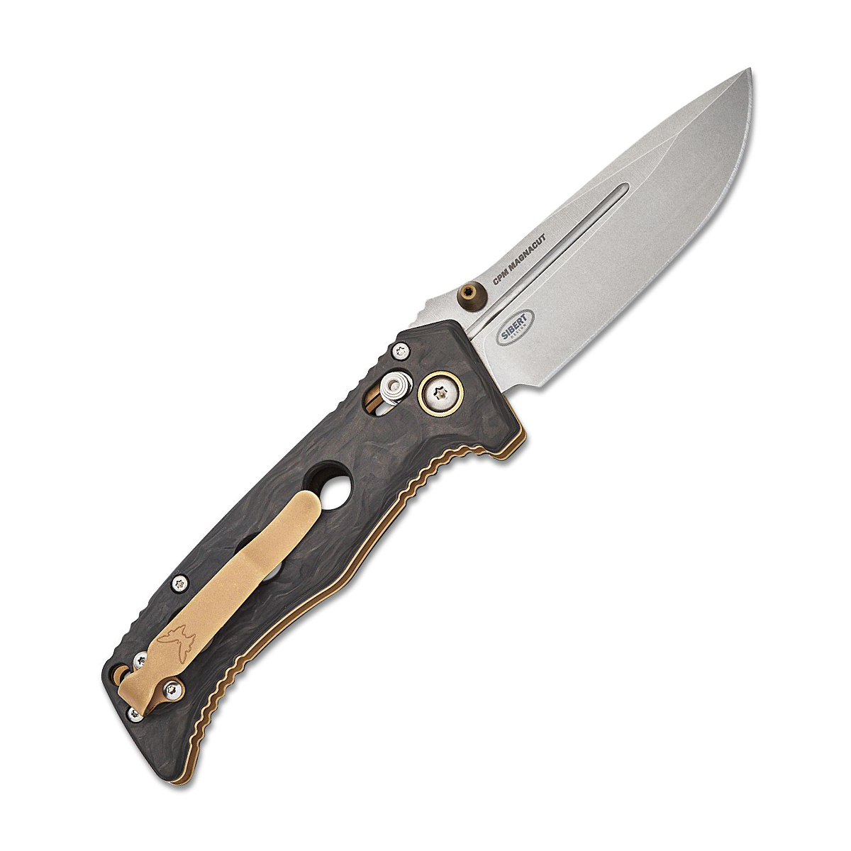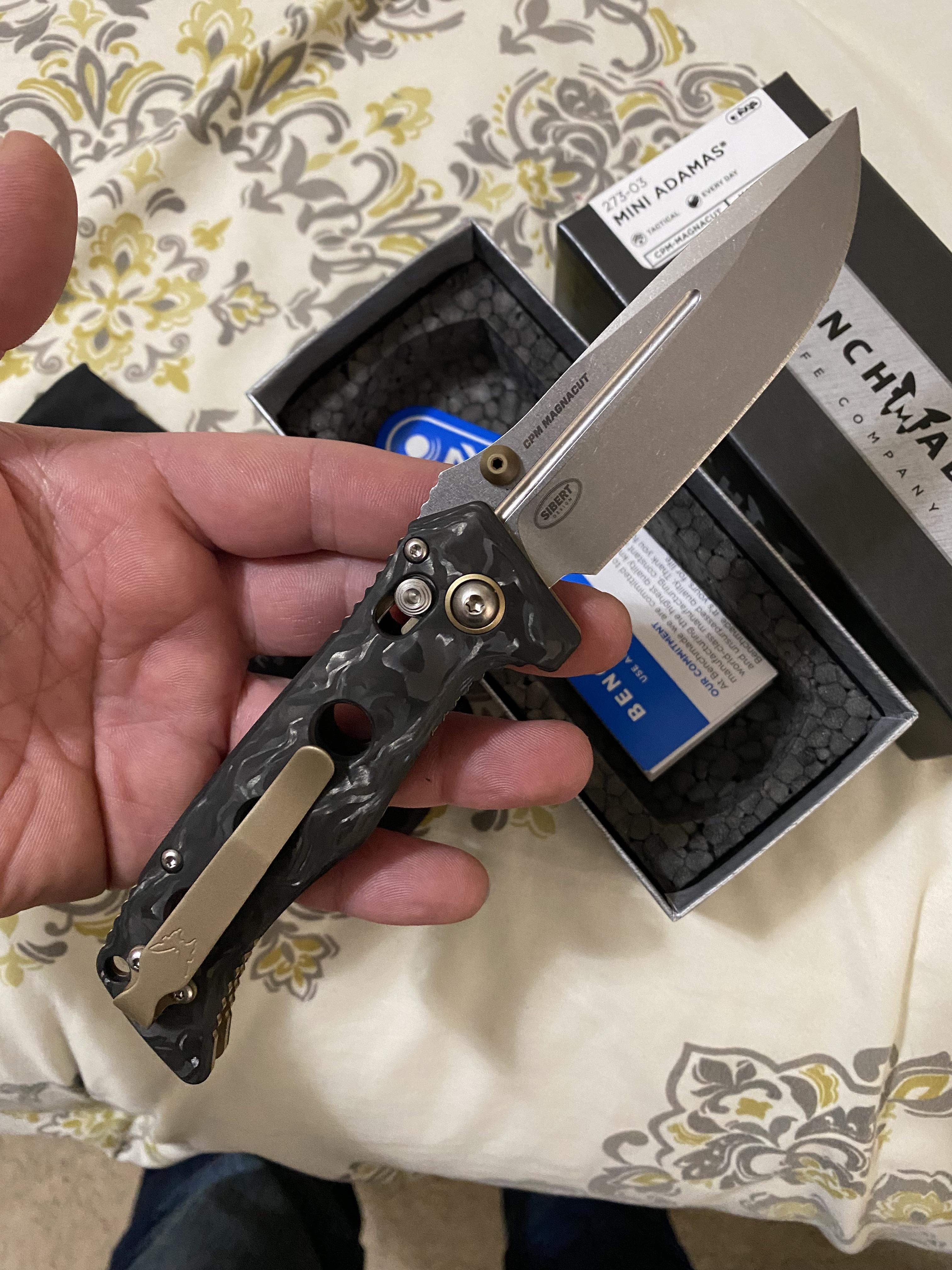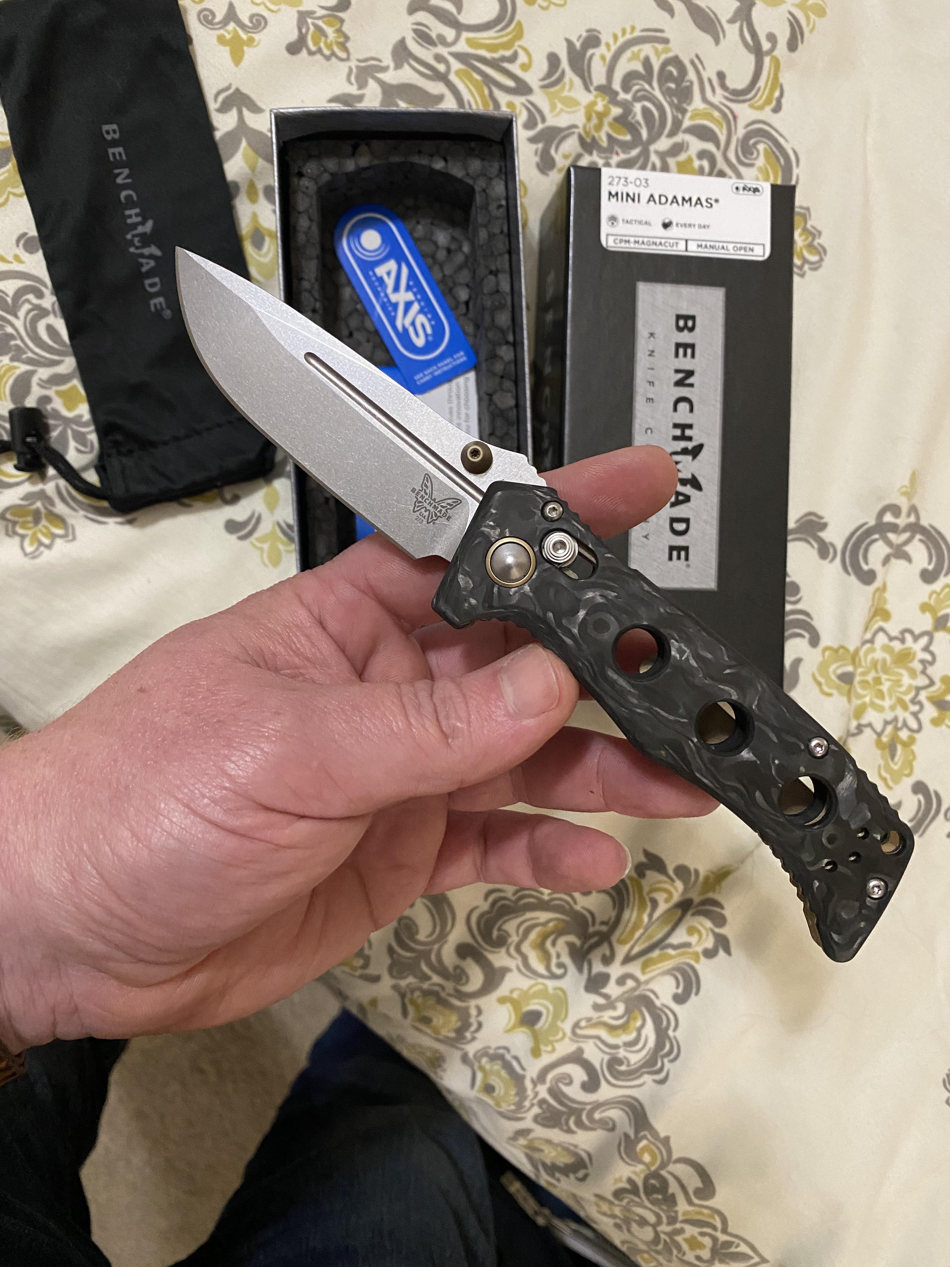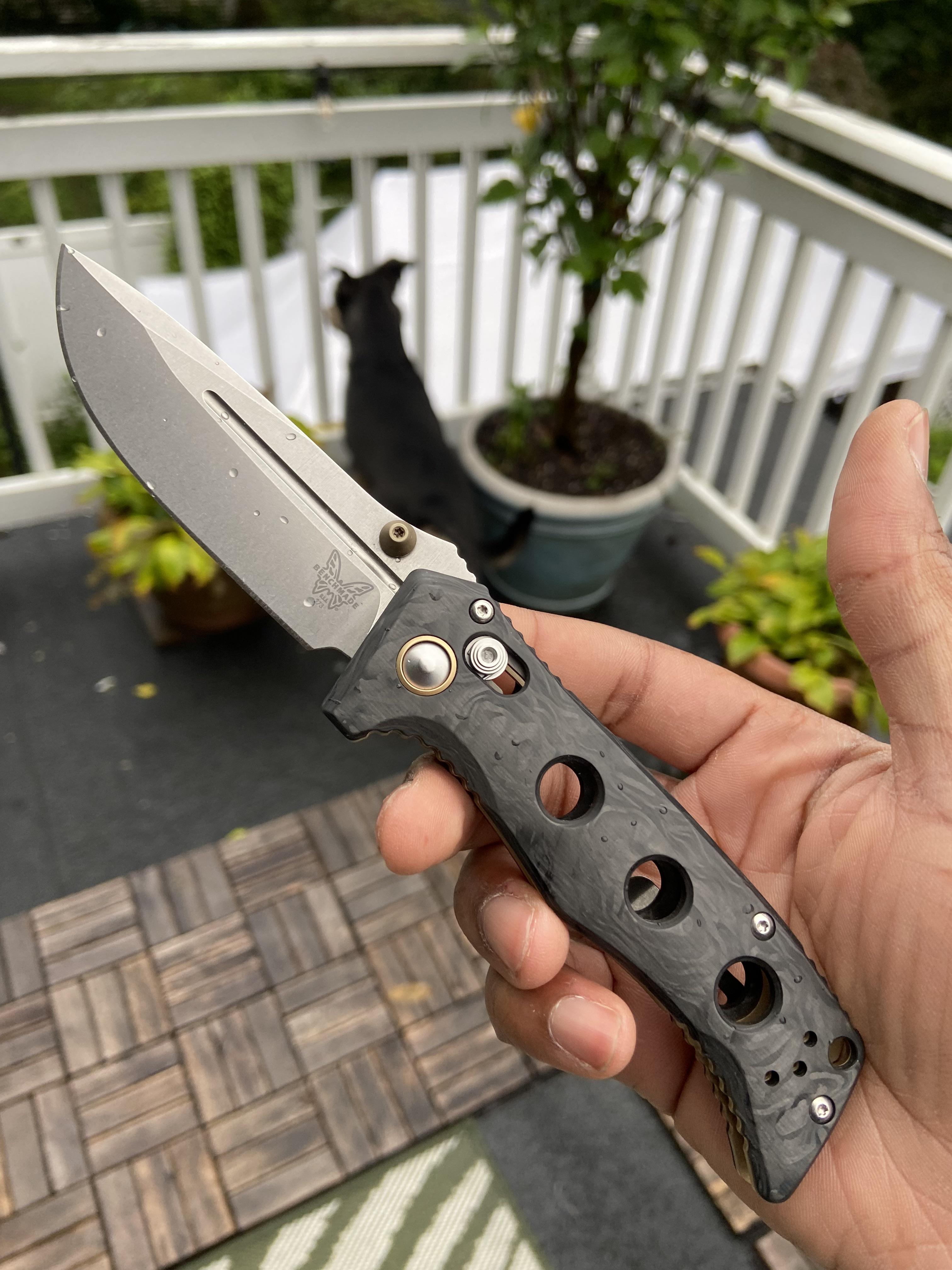 Benchmade 273-03 是一把精致而耐用的折刀。它采用了优质的材料和精湛的工艺,为用户提供出色的切割性能和可靠的使用体验。这把折刀由著名设计师Shane Sibert设计,以其坚固耐用的特性而闻名。刀片采用了3.25英寸的CPM MagnaCut不锈钢材质,具有出色的切割能力和长久的刀刃保持性。手柄采用大理石纹碳纤维材质,既轻巧又坚固,提供舒适的握持感和视觉吸引力。