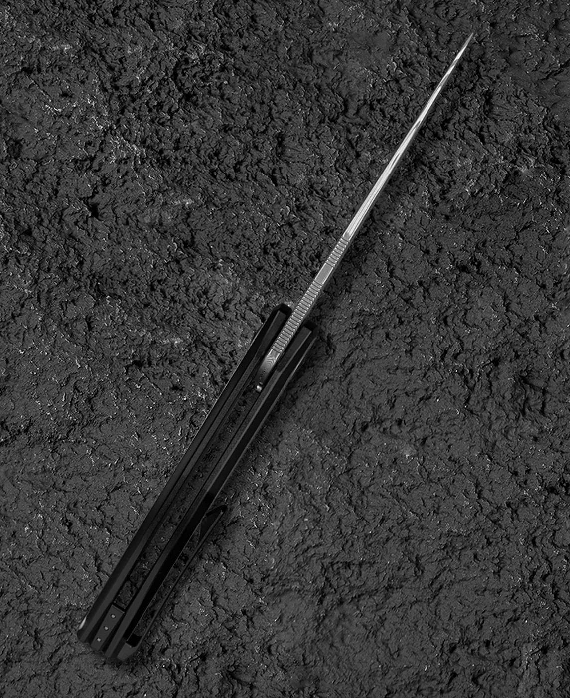刀片材质:大马士革钢 刀片表面处理:镜面+平光 手柄材质:钛+大马士革钢 描述:框架锁 手柄颜色: 黑色 总长度:8.40 英寸(213.3 毫米) 闭合长度:4.78 英寸(121.3 毫米) 刀片长度:3.62 英寸(92 毫...