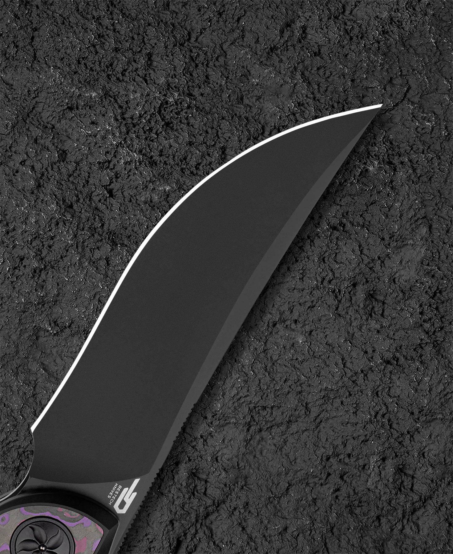 刀片材质: Magnacut 刀片表面处理:黑色 PVD 手柄材质:钛+脂肪碳纤维镶嵌 描述:框架锁 手柄颜色: 黑色 总长度:8.40 英寸(213.3 毫米) 闭合长度:4.78 英寸(121.3 毫米) 刀片长度:3.62 英寸(92 毫米) 刀片厚度:0.150 英寸(3.8 毫米) 刀片硬度:61-62HRC 夹子材质:钛 滚珠轴承:陶瓷 重量:126克(4.44盎司)
