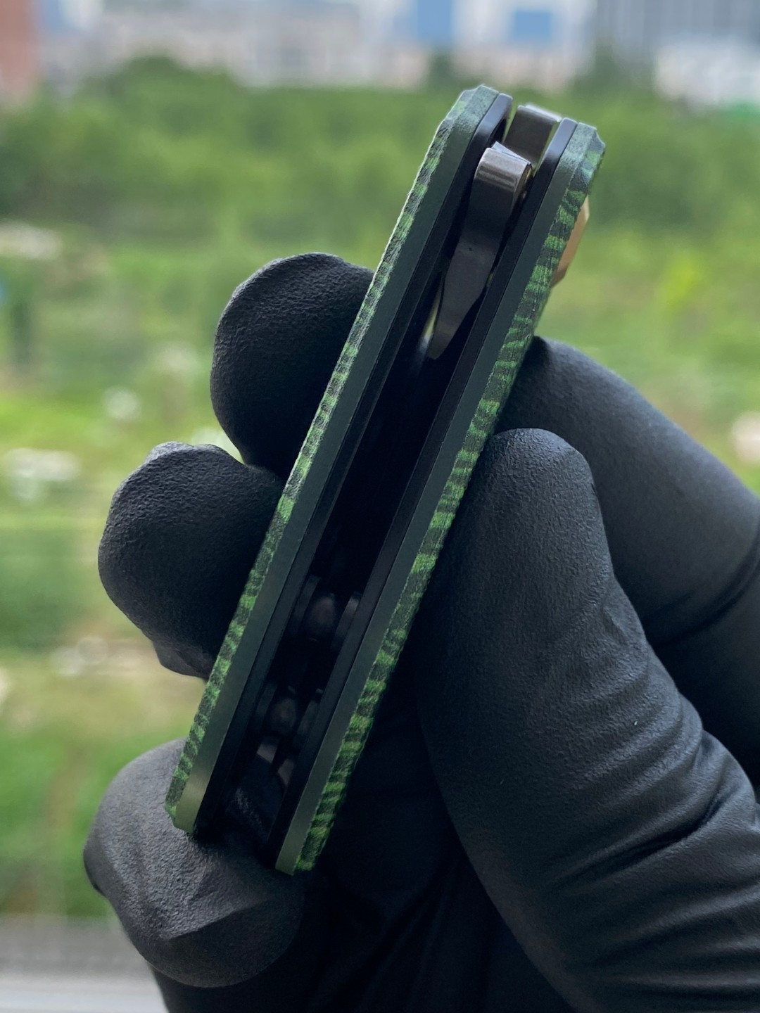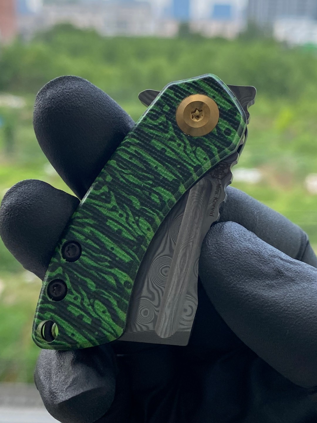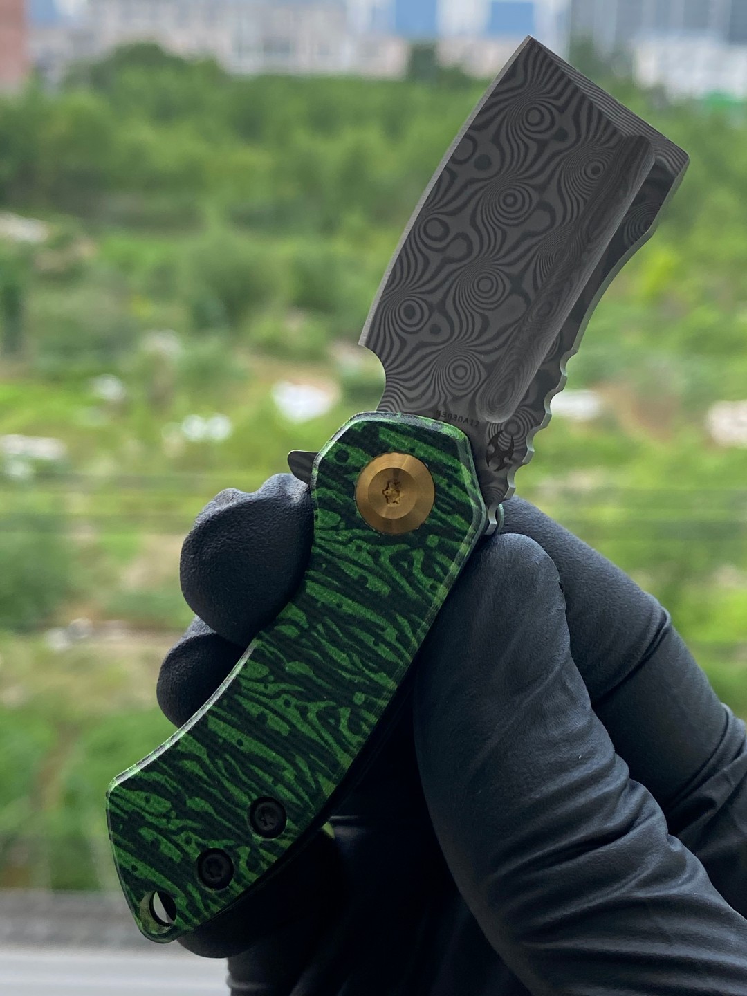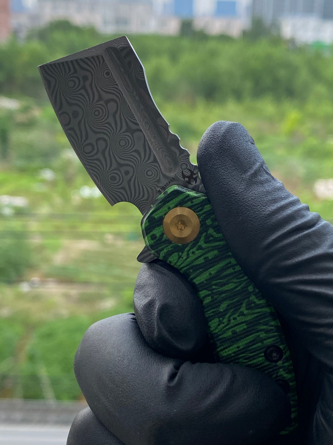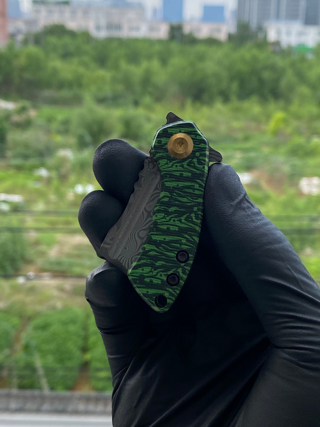 总体长度: 3.8英寸/96.5毫米 刀片长度: 1.45 英寸/36.9 毫米 刀片厚度: 0.118 英寸/3.0 毫米 刀片材质: 大马士革 刀片材质: 大马士革 手柄材质: Jade G10 西瓜皮印花 颜色: 黑色和绿色 锁型: 内...