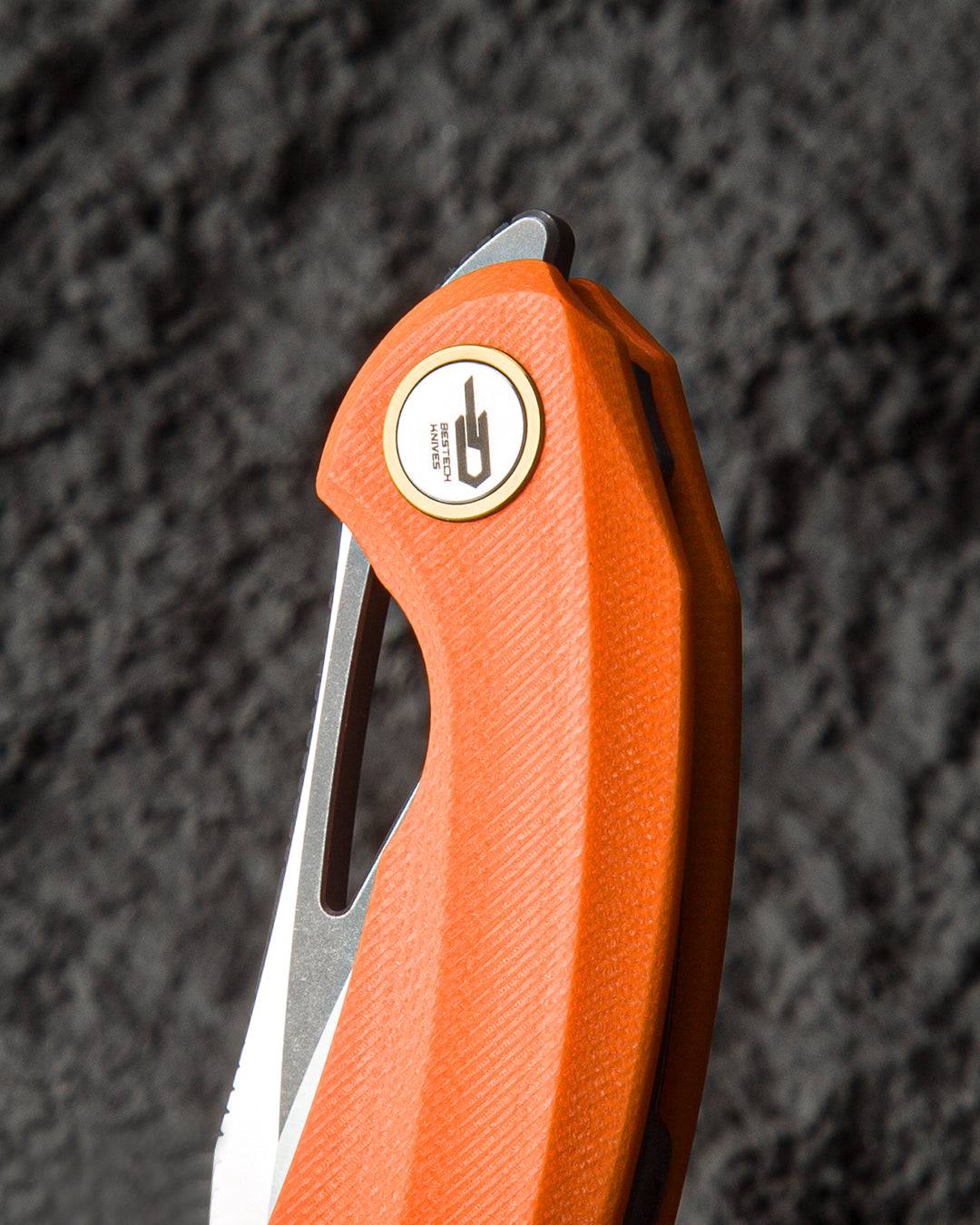 刀片材质:14C28N 刀片表面处理:灰色 DLC 石洗 + 缎面 手柄材质:G10 夹子材质:钢 描述: 内衬锁 手柄颜色:橙色 滚珠轴承:陶瓷 总长度:5.24 英寸(133 毫米) 闭合长度:3.09 英寸(78.5 毫米) 刀片长度:2.15 英寸(54.5 毫米) 刀片厚度:0.118 英寸(3.0 毫米) 刀重:52g