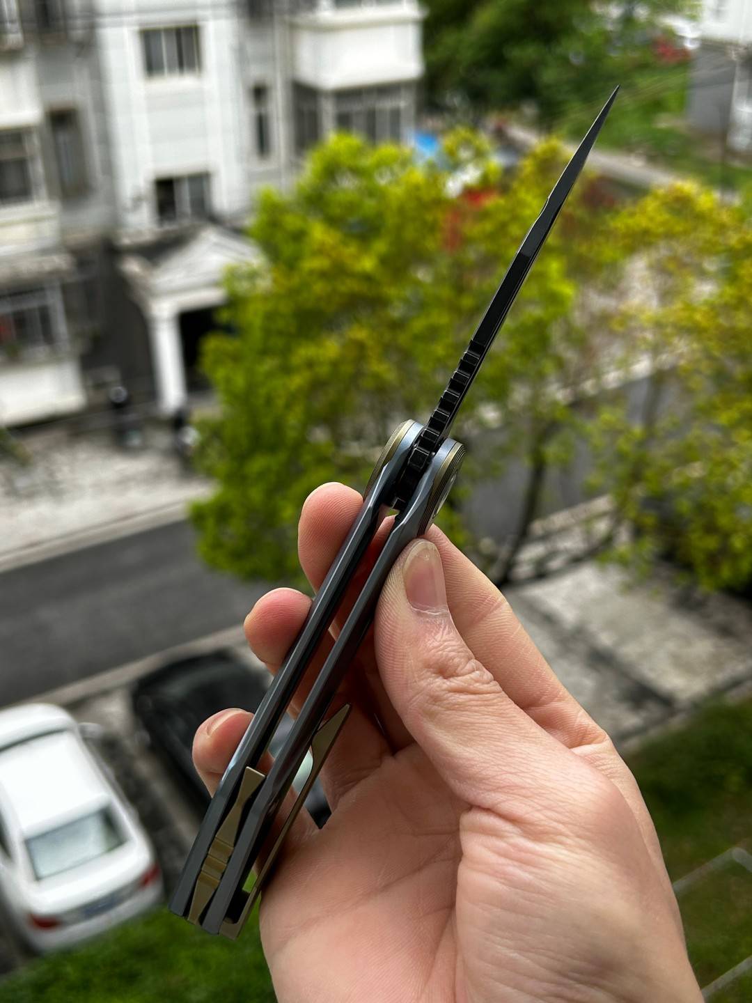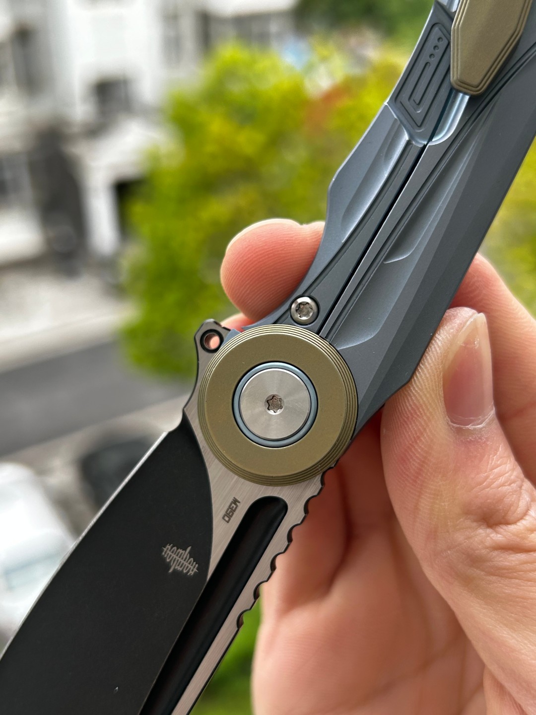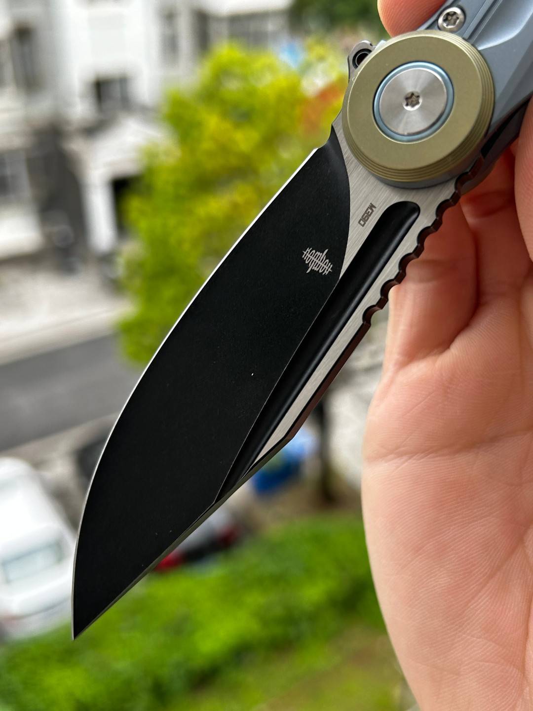 刀片材质:M390 刀片表面处理:黑色石洗 手柄材质: 钛 描述:框架锁 手柄颜色:蓝色 总长度:8.31 英寸(211 毫米) 闭合长度:4.65 英寸(118 毫米) 刀片长度:3.66 英寸(93 毫米) 刀片厚度:0.150 英寸(3.8 毫米) 刀片硬度:59-61HRC 夹子材质:钛 后垫片:钛 滚珠轴承:陶瓷 重量:287.6克