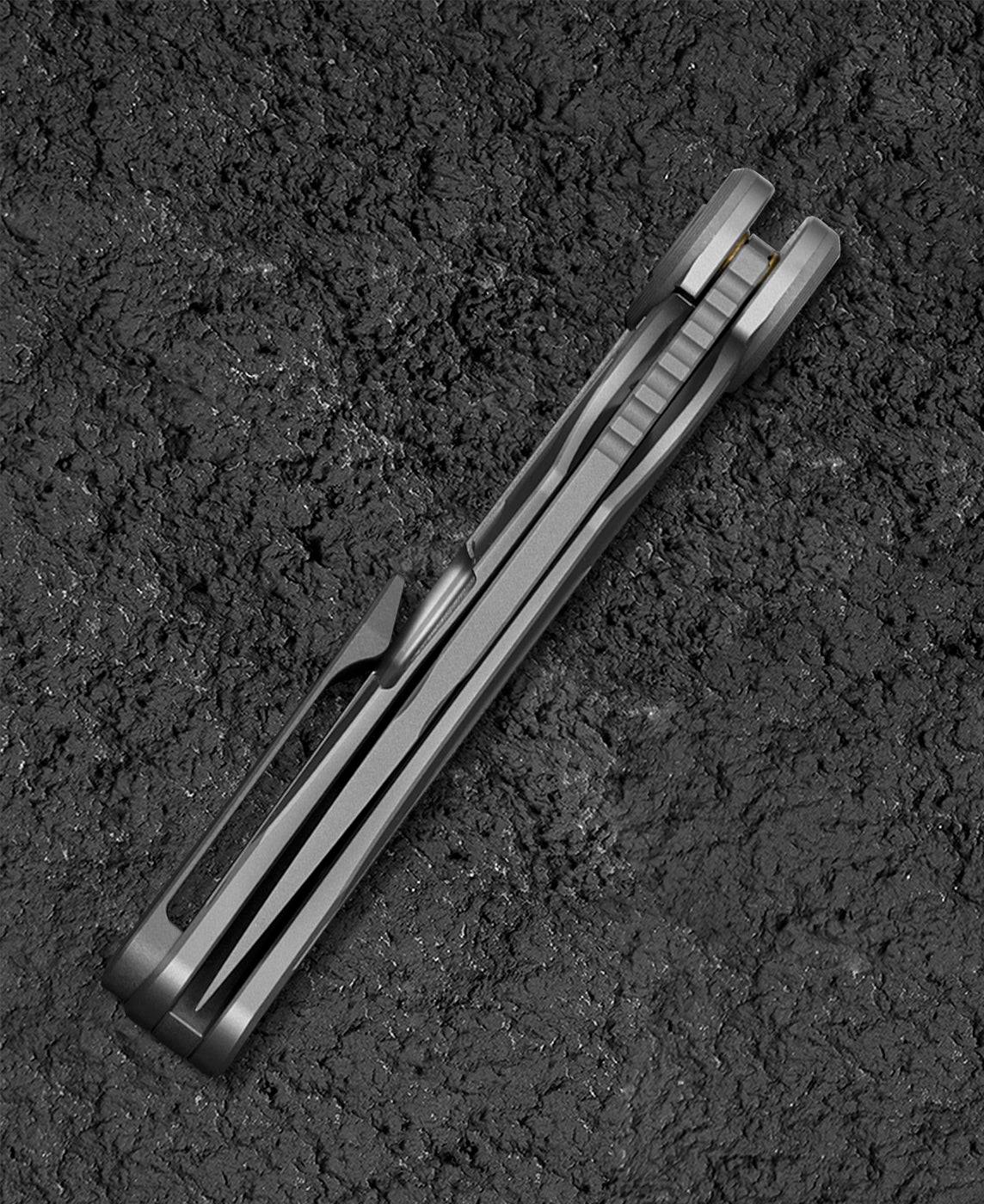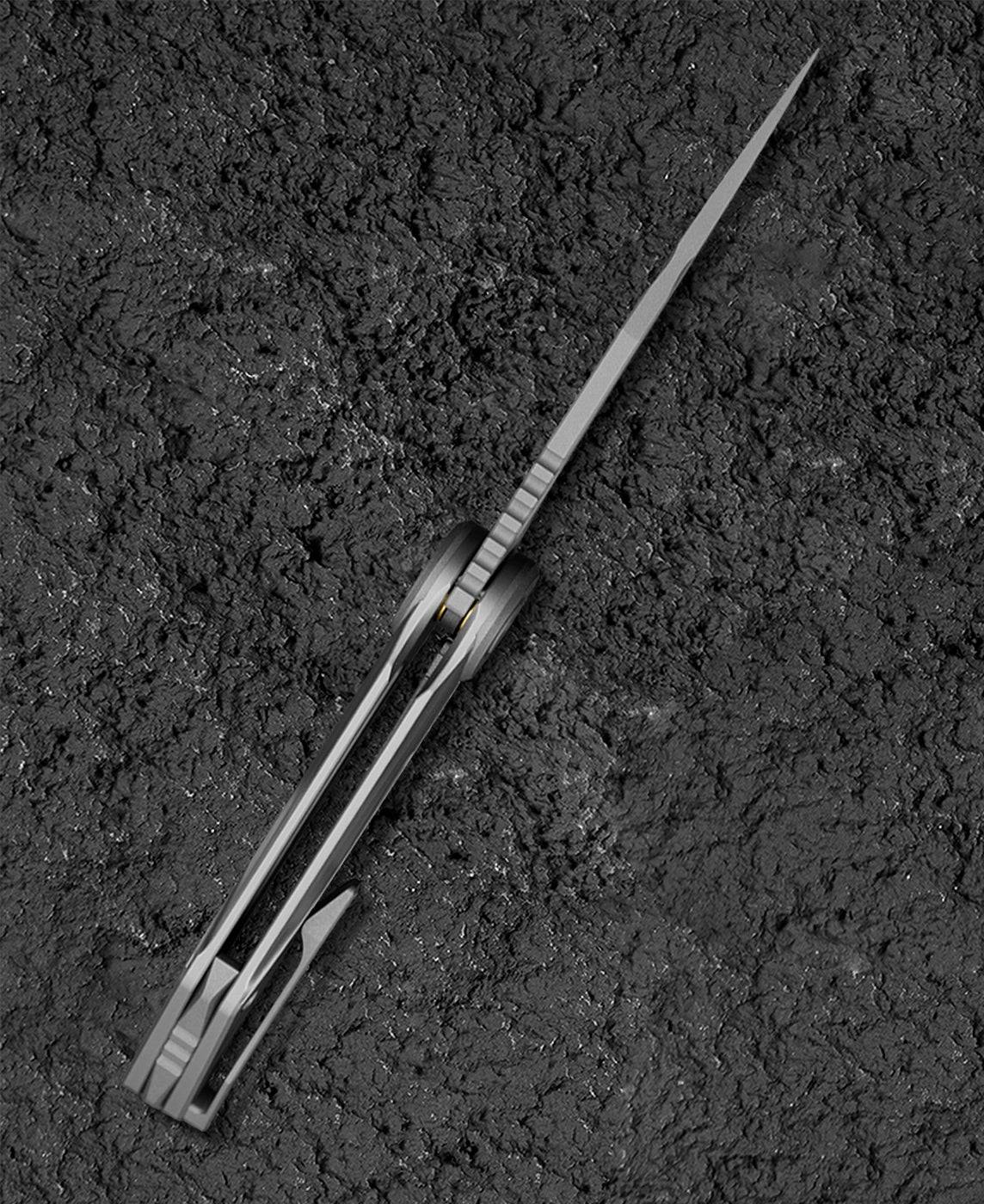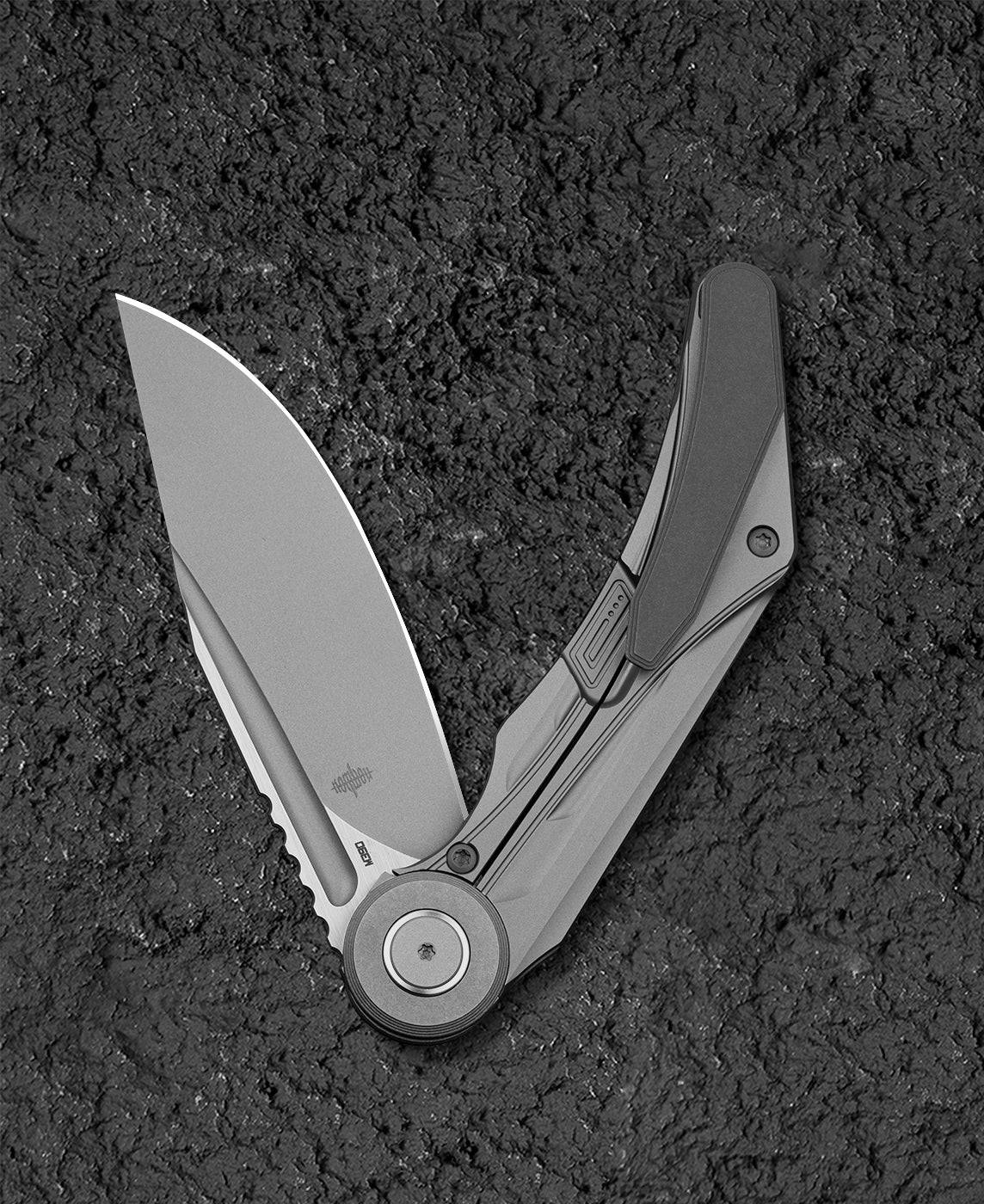 刀片材质:M390 刀片表面处理:缎面 手柄材质: 钛 描述:框架锁 总长度:8.31 英寸(211 毫米) 闭合长度:4.65 英寸(118 毫米) 刀片长度:3.66 英寸(93 毫米) 刀片厚度:0.150 英寸(3.8 毫米) 刀片硬度:59-61HRC 夹子材质:钛 后垫片:钛 滚珠轴承:陶瓷 重量:287.6克