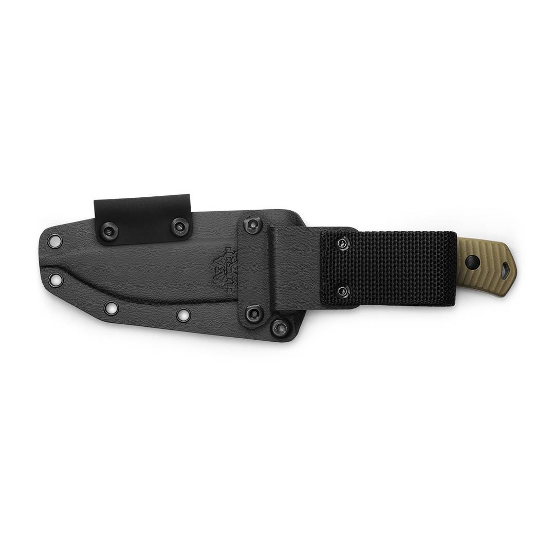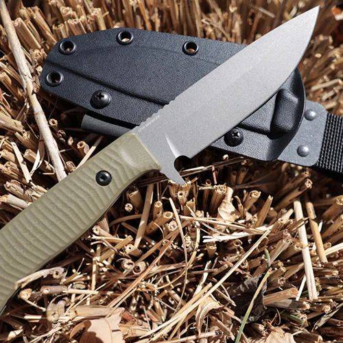 刀片钢:CPM-CruWear Rc硬度:63-65 刀片样式: 水滴头 刀片表面处理:钨灰色 Cerakote 手柄材质:OD 绿色 G-10 护套材质:黑色 Boltaron 刀片长度:5.0 英寸(127 毫米) 总长度:9.83...
