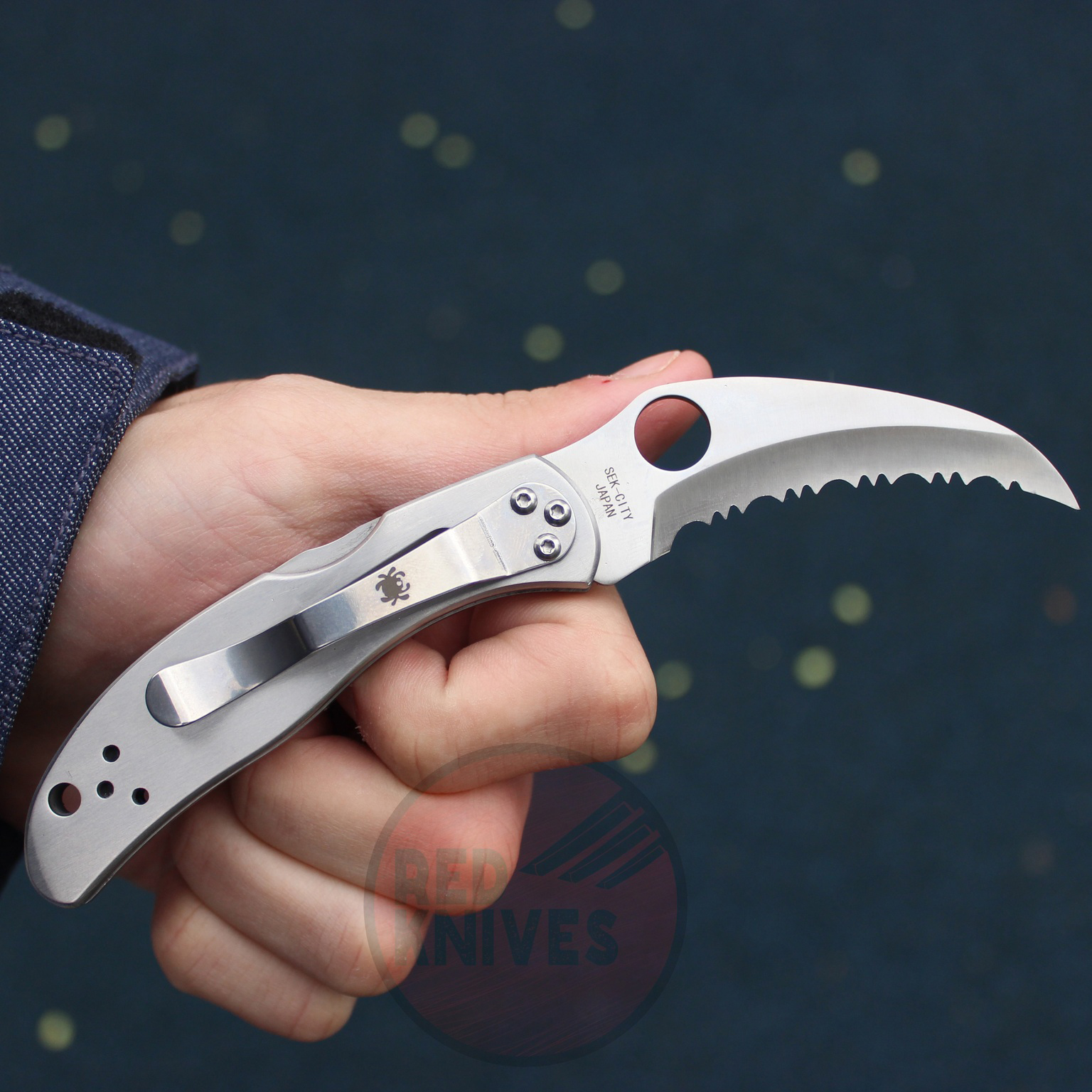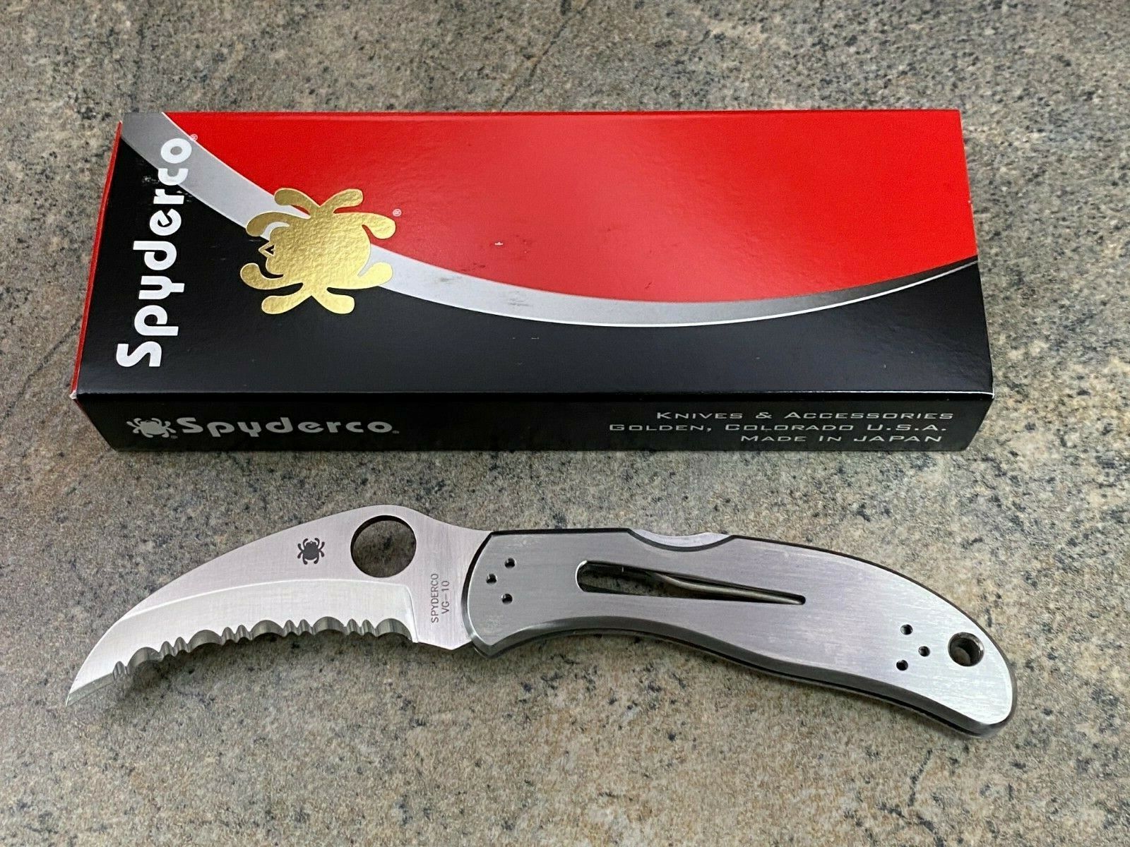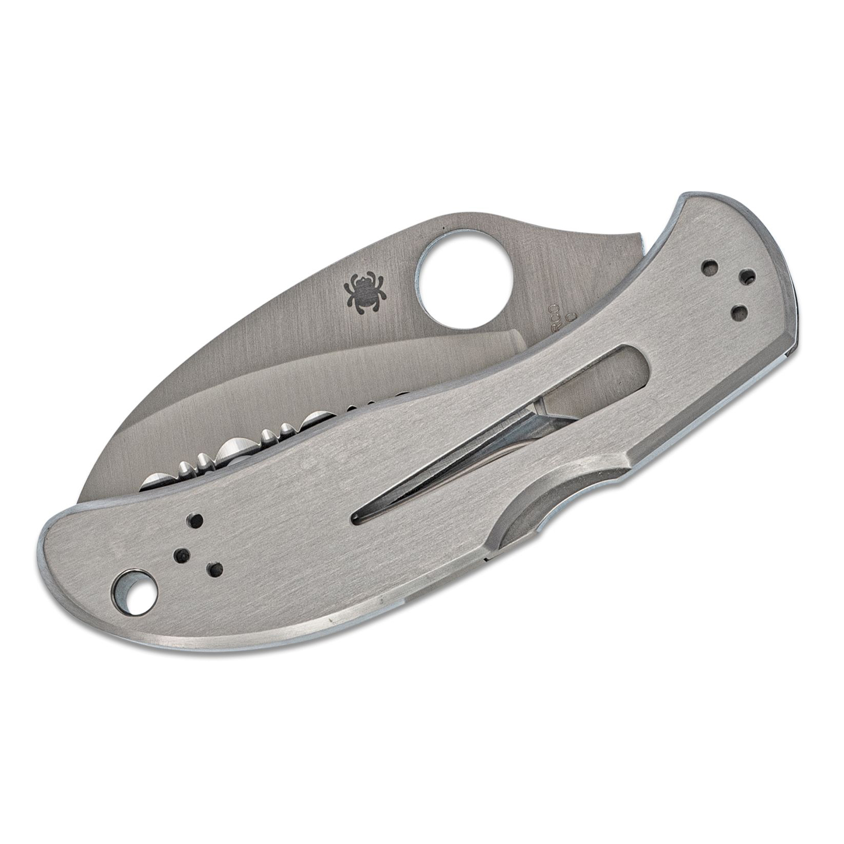 定制刀具制造商大卫·博伊(David Boye)开发了锁定杆上的凹槽,确保在用力握住手柄时刀片保持牢固地锁定打开状态。手柄上切割出一个铁环钥匙/通风口,使湿润时刀片闭合时空气可以流通。金属夹子位置设计为尖端向下携带。