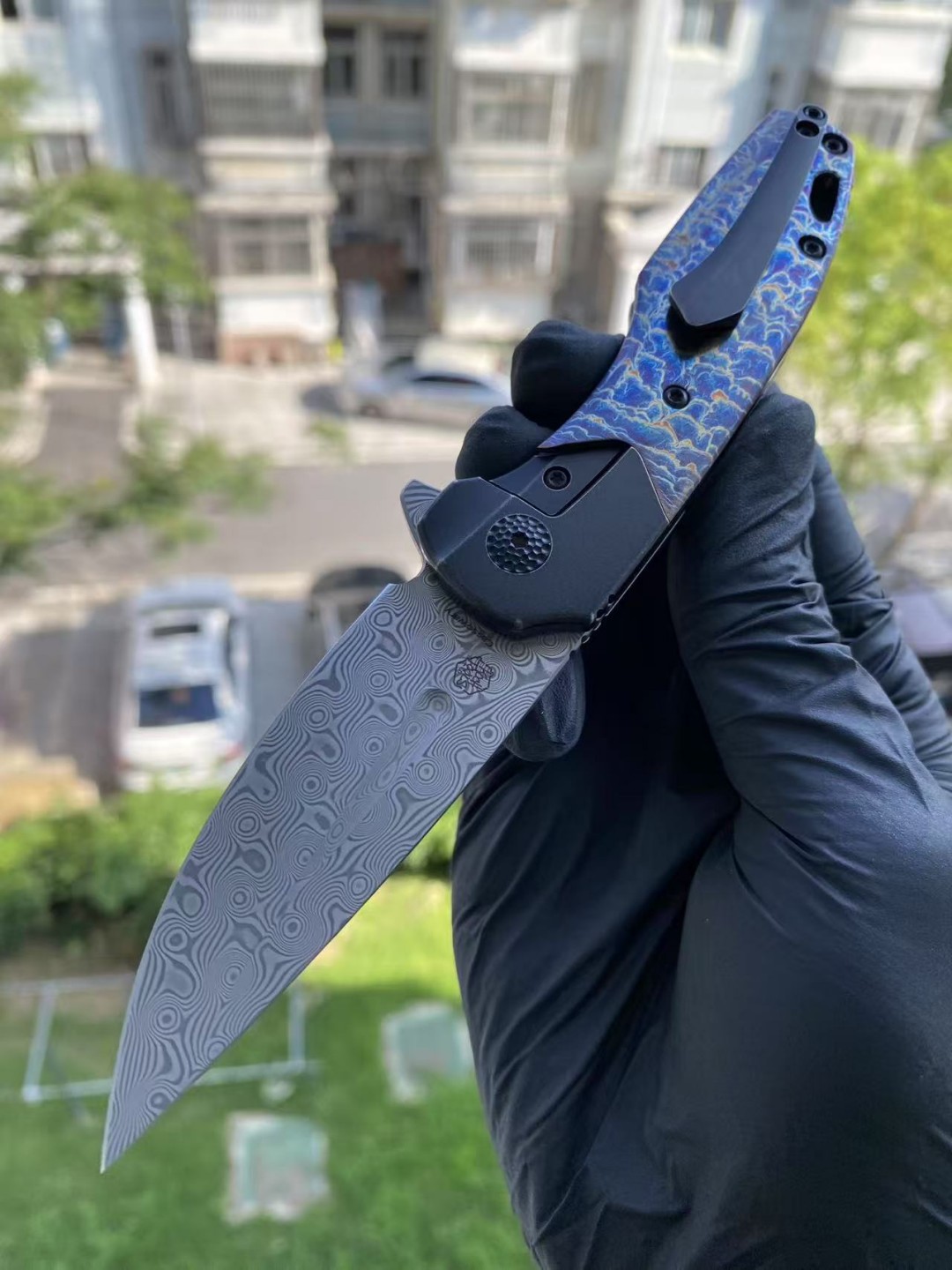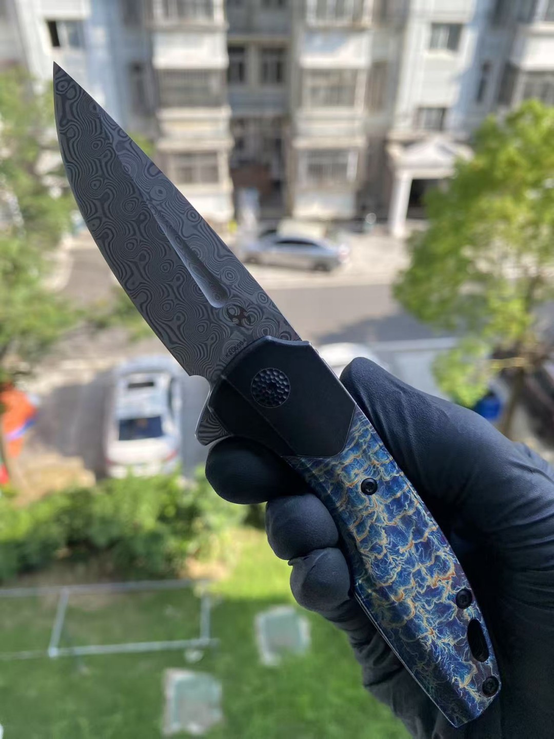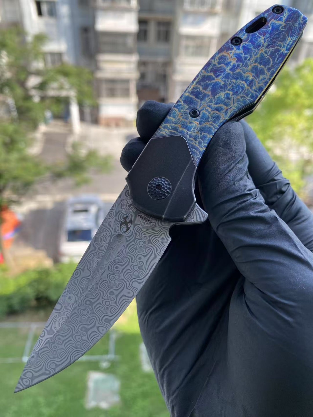KANSEPT QTRO 大马士革钢 钛合金手柄 K1118VA2 蓝色 1580