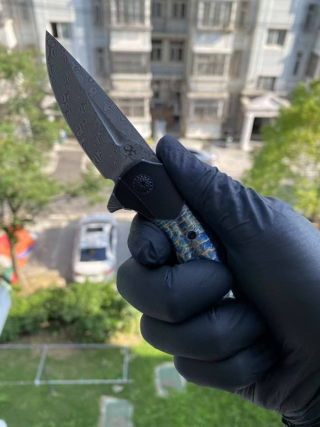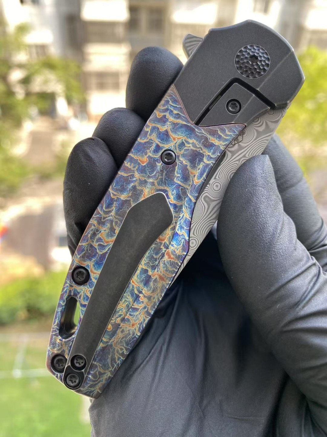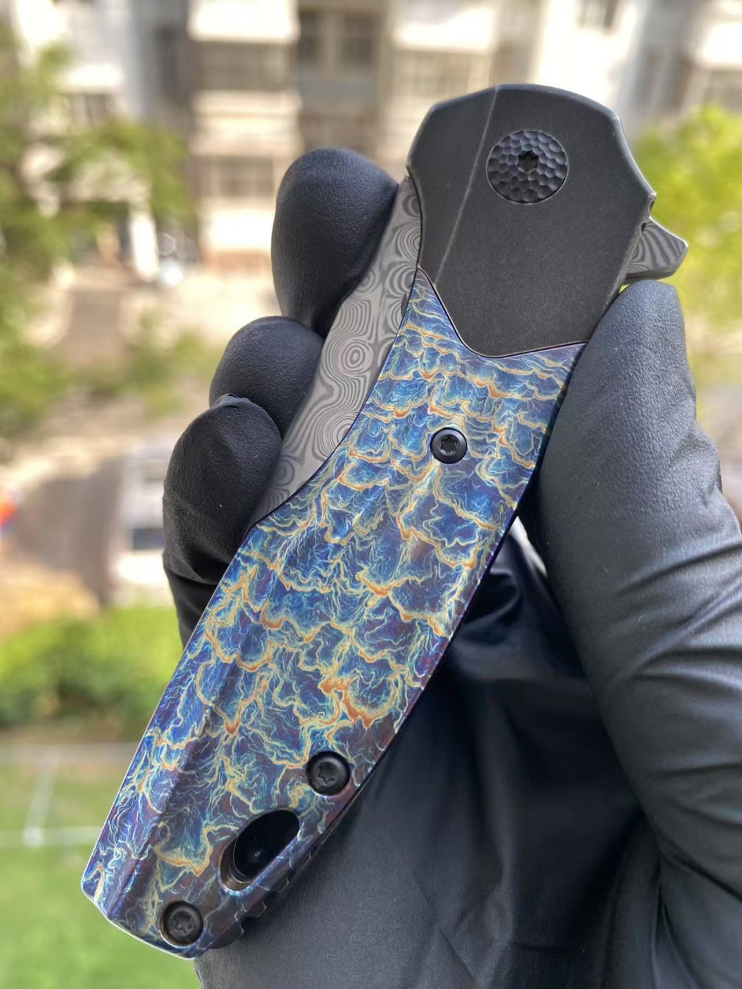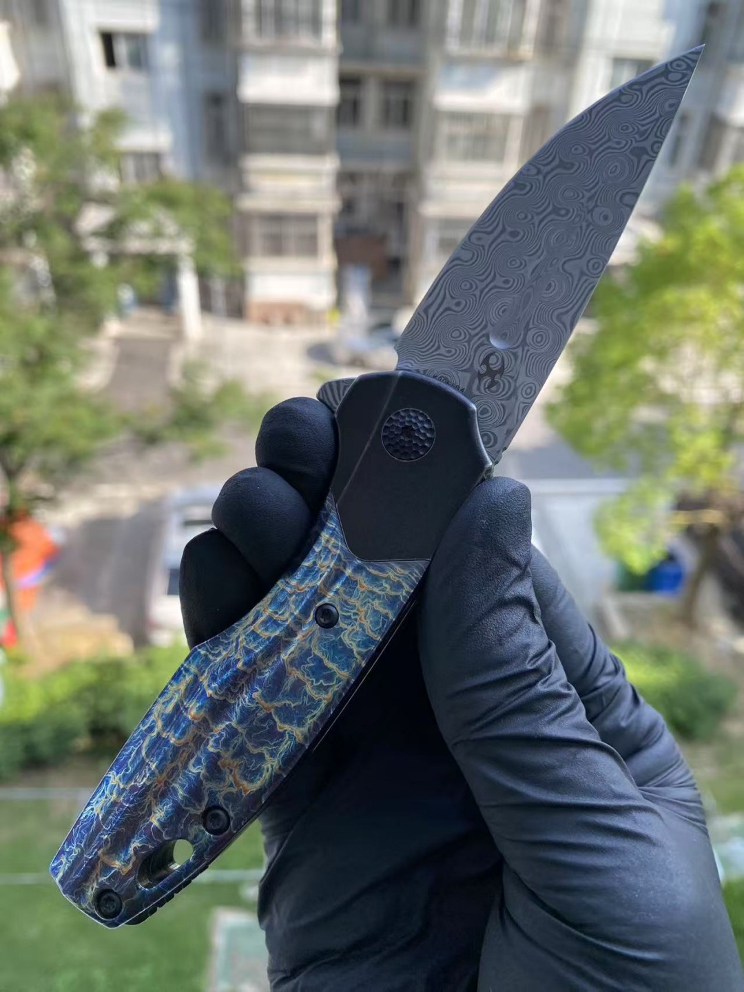 KANSEPT QTRO 大马士革钢 钛合金手柄 K1118VA2 蓝色 1580