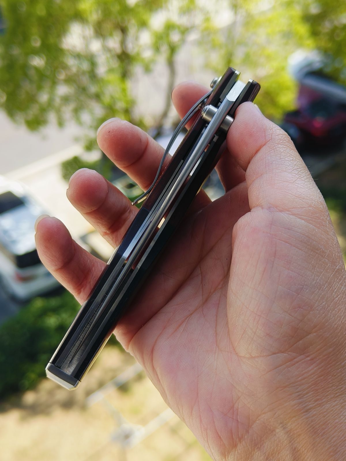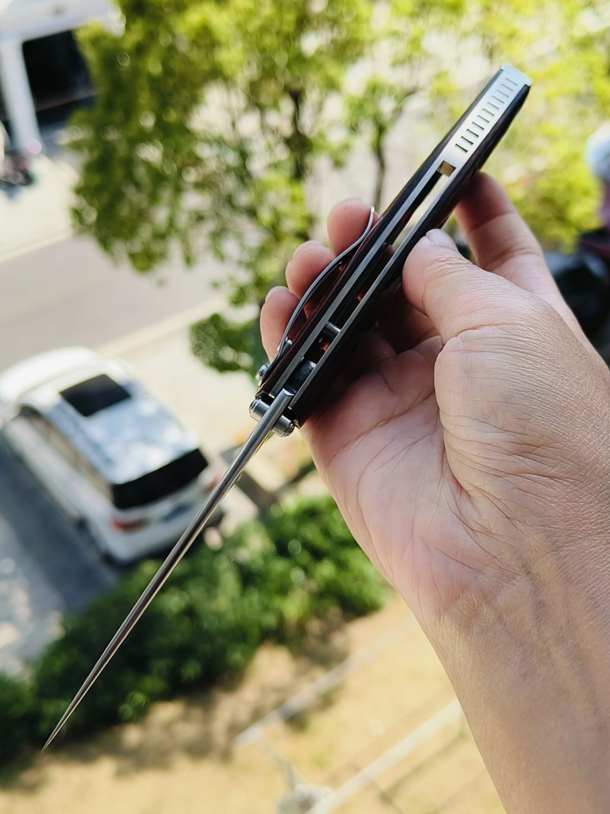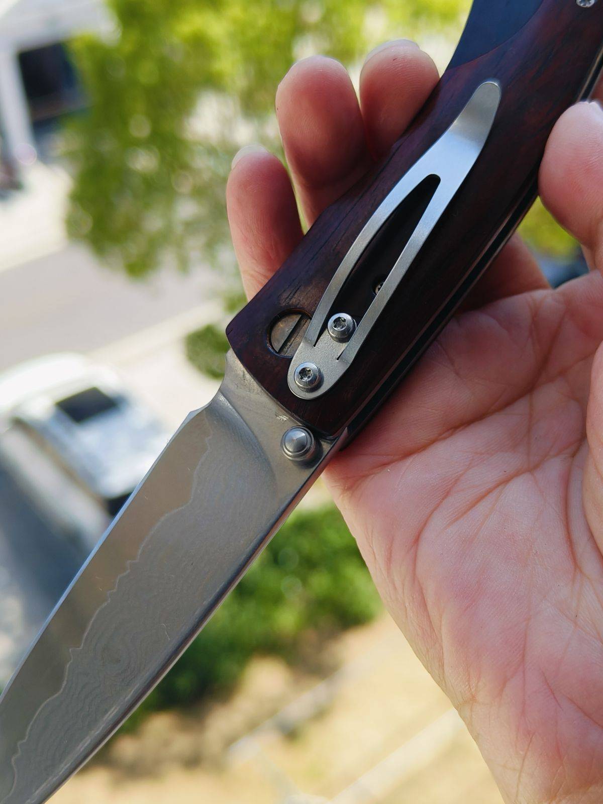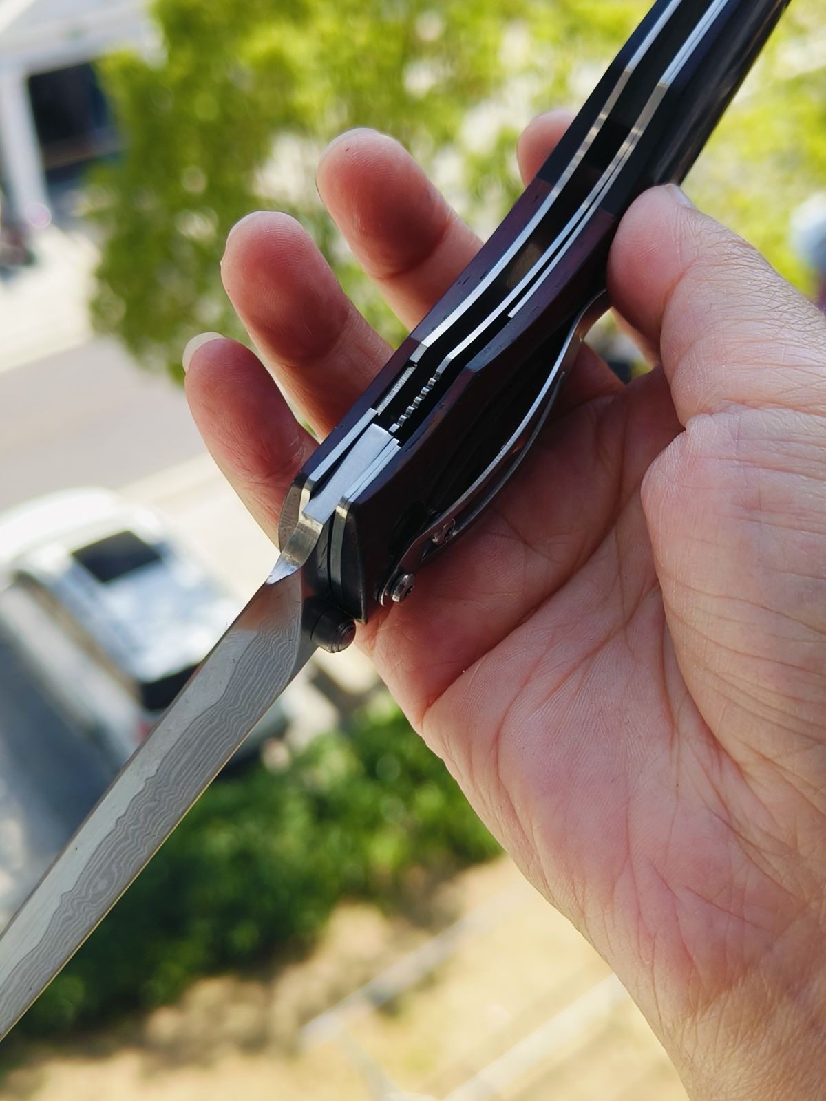 刀片: Jazz 的水滴头刀片采用实心 VG-10 不锈钢制成,配备全平面磨削,可实现出色的切片性能,同时保持良好的耐用性。冠状的书脊和抛光的缎面处理非常适合定制系列绅士文件夹。它可以通过与缎面枢轴硬件相匹配的双拇指螺柱在聚四氟乙烯垫圈上顺利打开。刀片美观、实用且实用。
