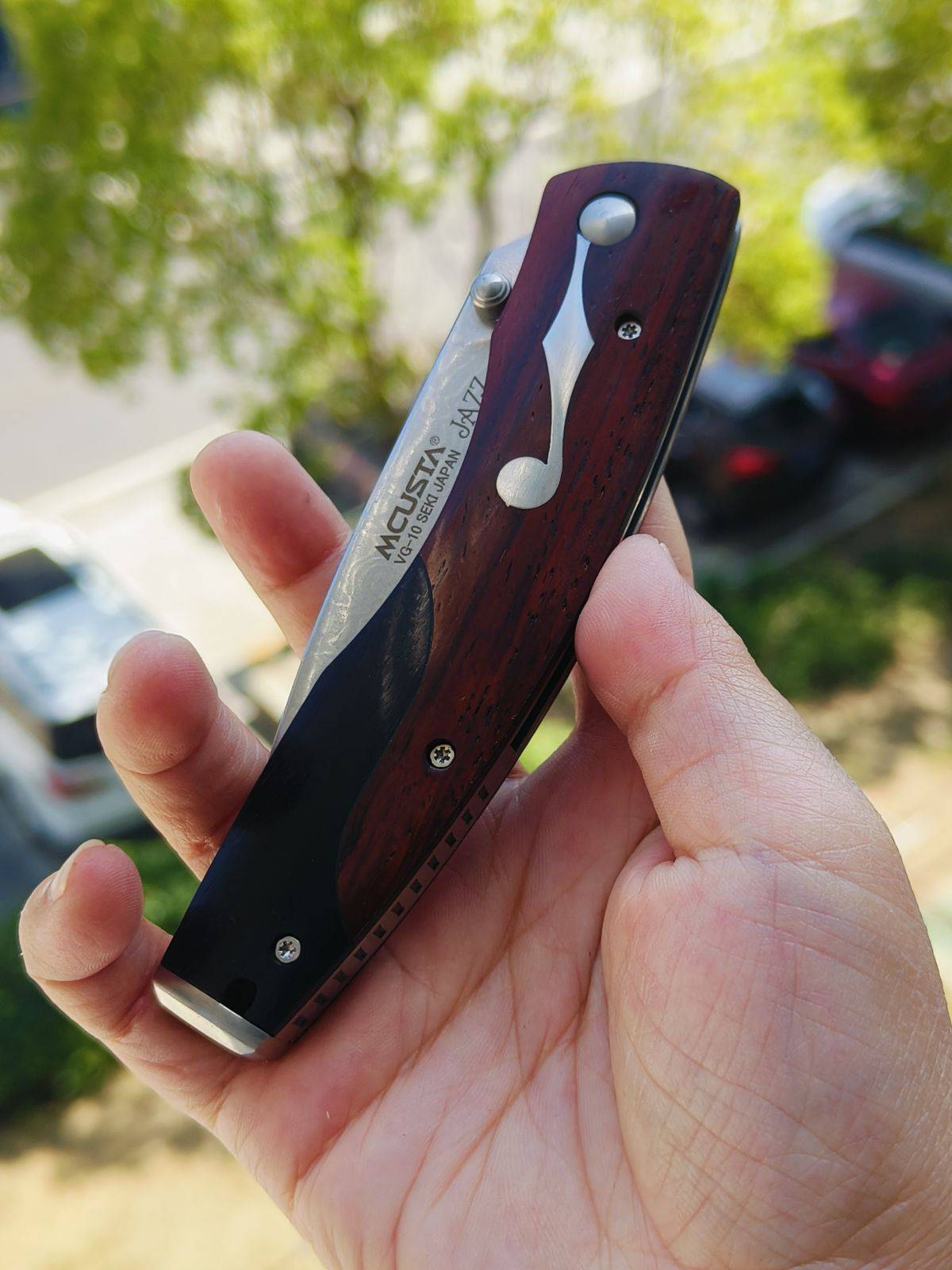 作为定制系列的一部分,Mcusta 171“Jazz”配备了美丽的轮廓可可波罗木和非洲乌木鳞片,钢衬里配有水滴点、缎面抛光 VG-10 不锈钢刀片。显示刻度上镶嵌有抛光不锈钢,暗示其音乐起源。 Mcusta 171 Jazz 设计简洁、简约、优雅,是用户和收藏家日常携带的绅士刀。