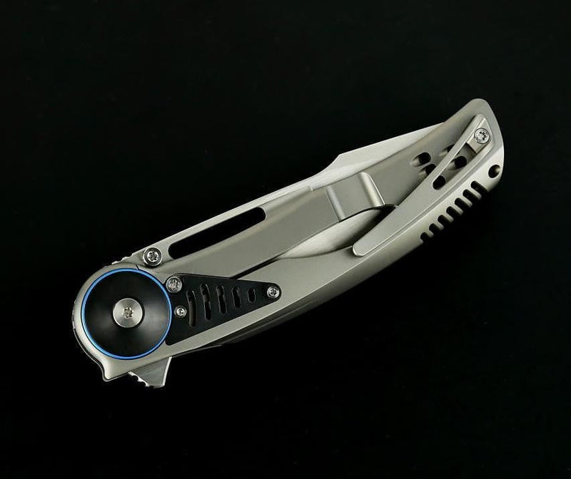 型号:GTR 全长:223mm 刃长:91mm 闭合长度:127mm 刃厚:4mm 钢材:M390 硬度:60HRC 表面处理:缎面 柄材处理:喷砂处理 镶嵌:Zircuti/锆 重量:156.7克