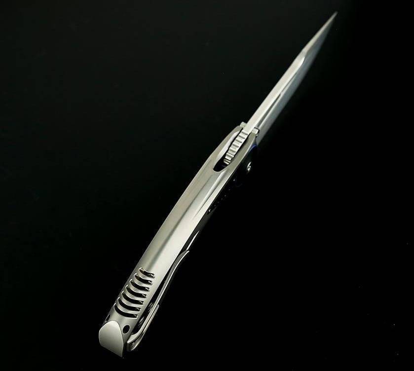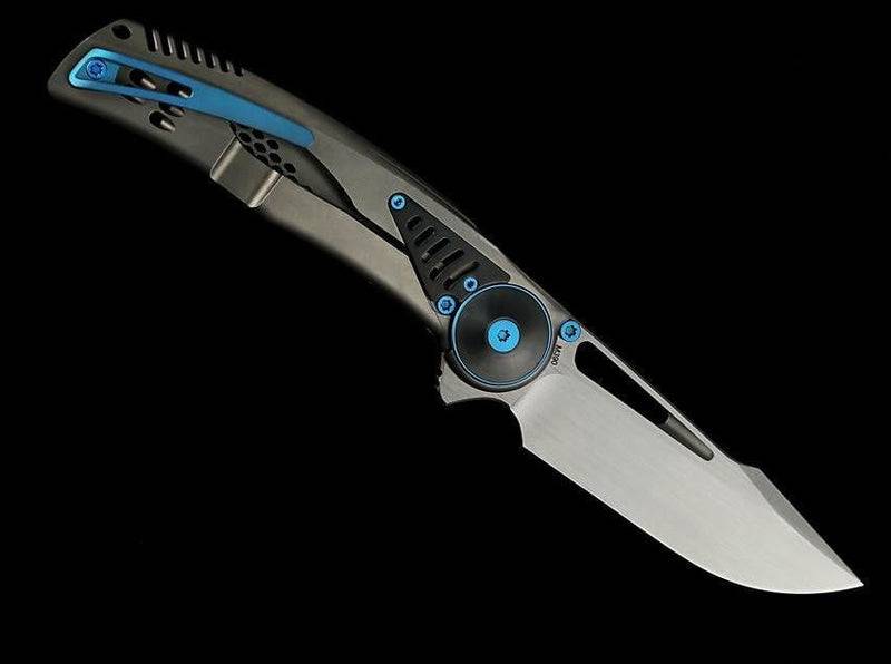型号:GTR 全长:223mm 刃长:91mm 闭合长度:127mm 刃厚:4mm 钢材:M390 硬度:60HRC 表面处理:缎面 柄材处理:喷砂处理 镶嵌:Zircuti/锆 重量:156.7克
