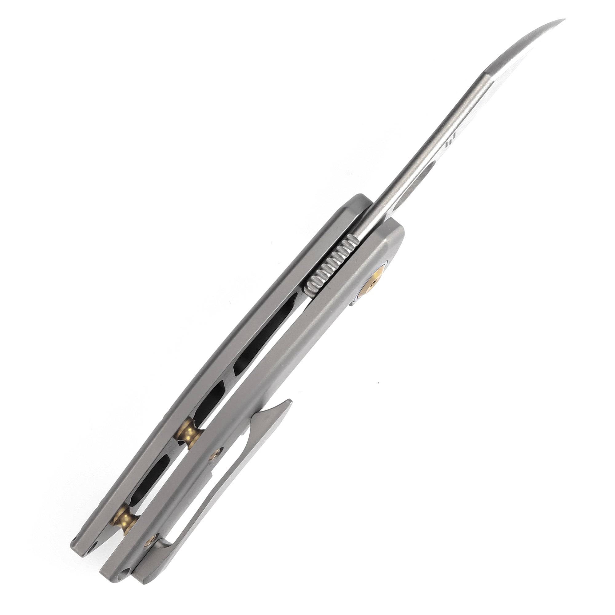 Osprey 的设计目标是在最小的包装中展现最有个性。它采用凶猛的反曲玳瑁刀片和突出的前鳍,使这把小刀充满乐趣。Osprey 的拇指孔和锯齿状前鳍提供了极大的烦躁因素,虽然刀片很短,但威力十足。